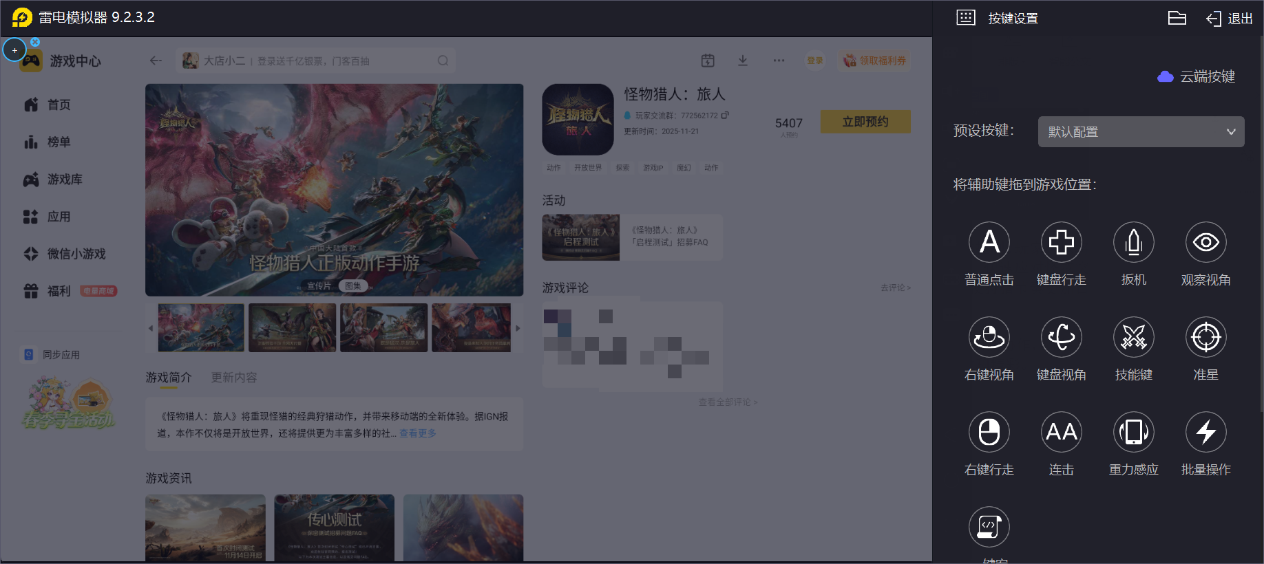 雷电模拟器——怪物猎人旅人电脑版的好帮手