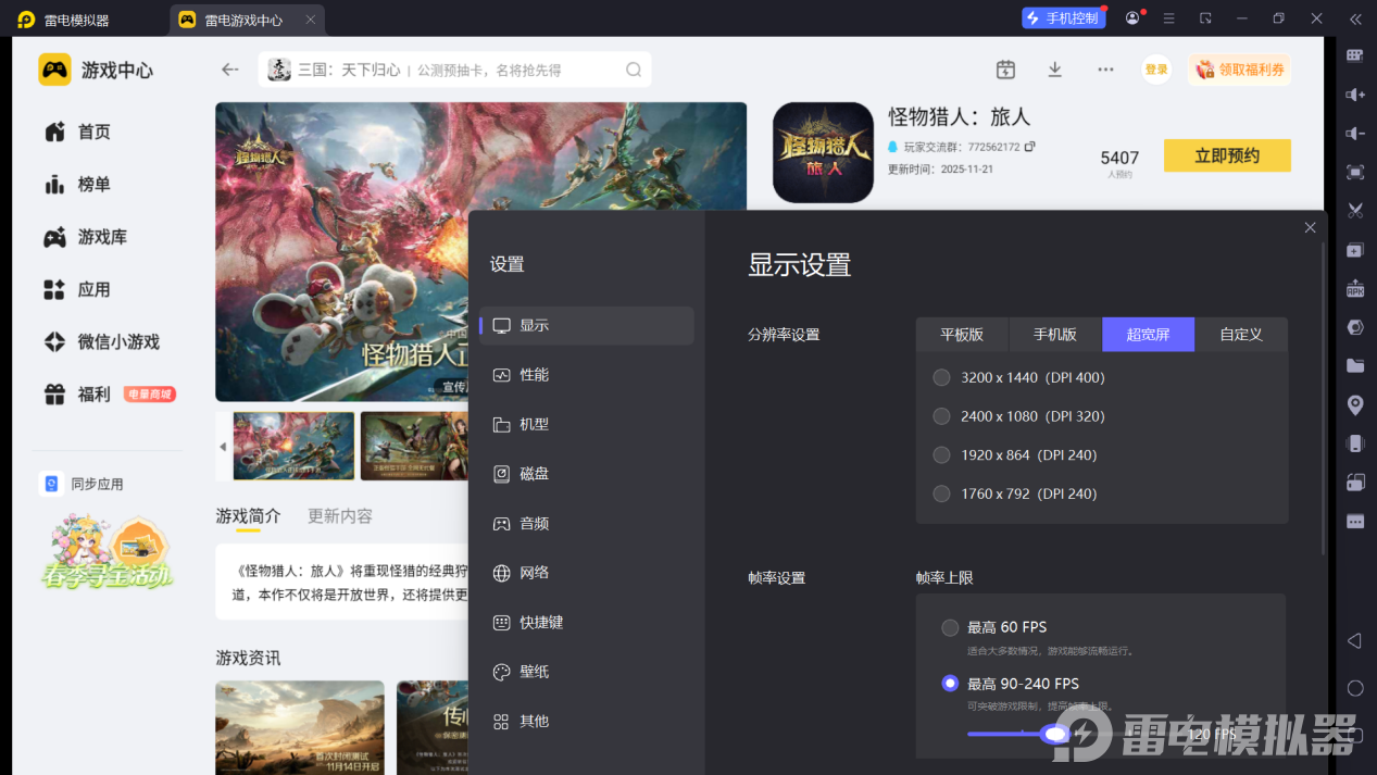雷电模拟器——怪物猎人旅人电脑版的好帮手