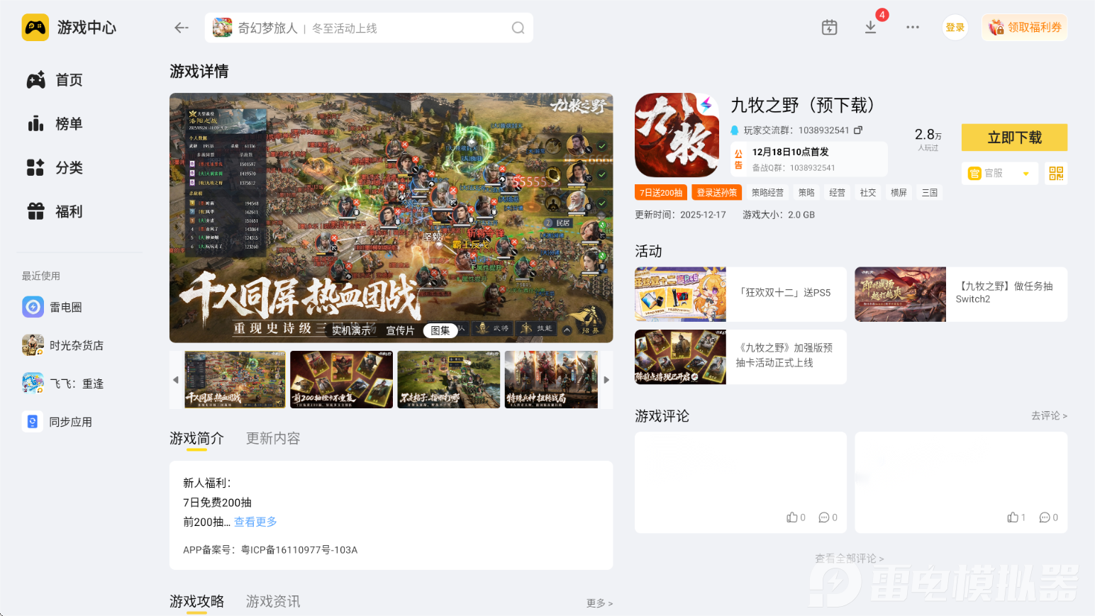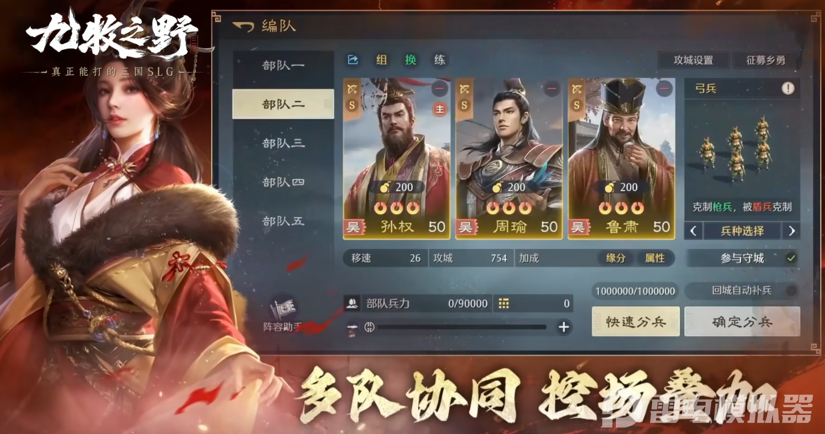 九牧之野吴国阵容玩法丰富,平民有易上手的周瑜主动弓,氪金玩家有爆发力拉满的孙权怒气流,喜欢持续伤害的玩家能选孙尚香溃逃弓,不同需求都能满足。如果你想轻松玩转这些强势吴国阵容,不妨试试雷电模拟器,解锁更流畅、高效的游戏体验。