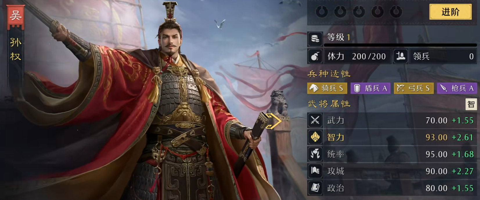 阵容配置是孙权+陈宫+沮授,也能换成小乔辅助。孙权的大招伤害系数特别高,还能驱散负面状态,满红后命中三个以上目标就回100点怒气,搭配满红小乔能开局获得100点初始怒气,技能释放速度飞快。陈宫和沮授能给孙权加伤害、回怒气还能回血,这套阵容爆发极强,氪金玩家培养后战力拉满。
