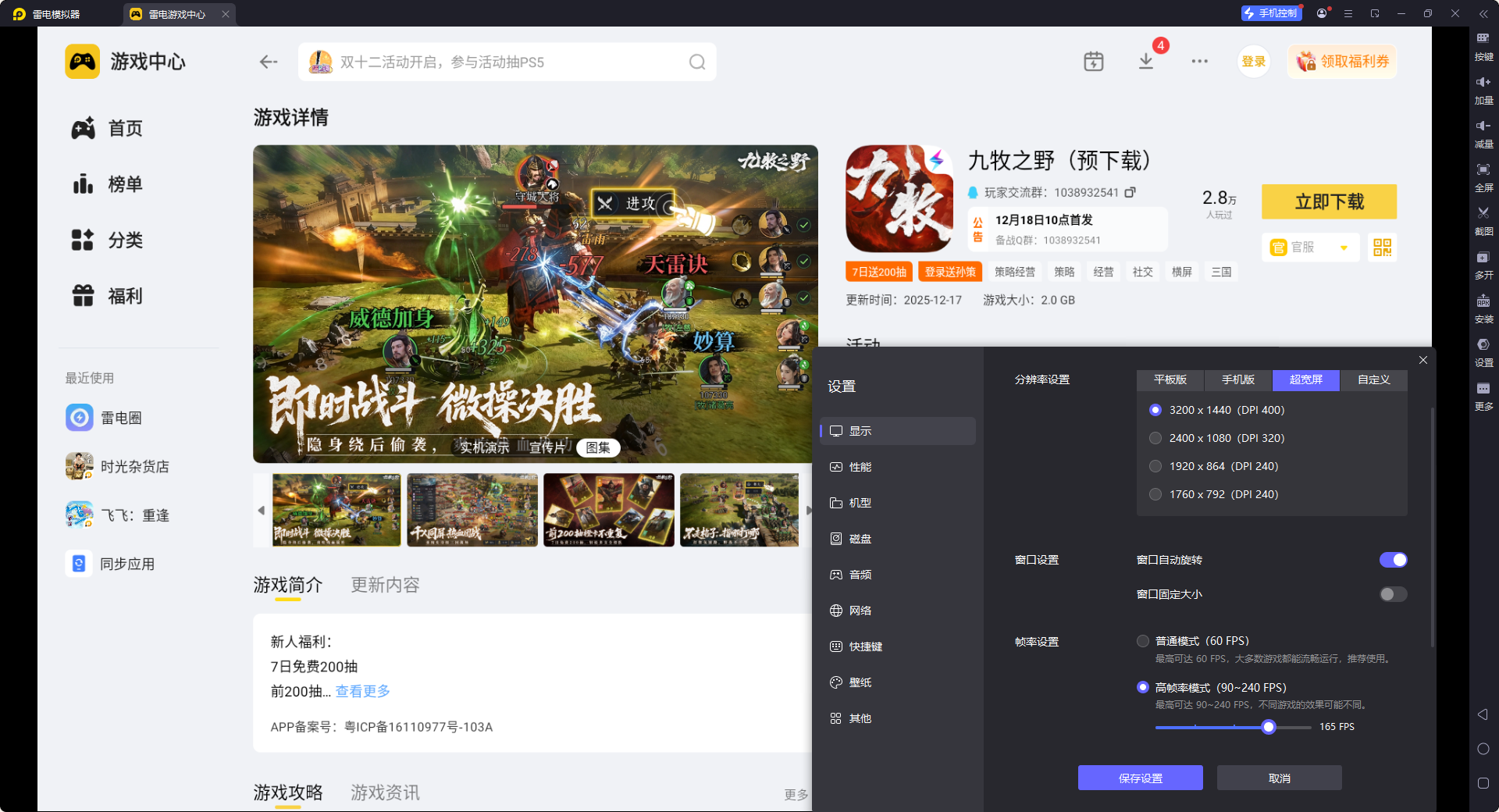 吴国阵容的燃烧、溃逃等特效多,战斗场面复杂,手机容易掉帧。雷电模拟器支持165稳定帧率模式,画面丝滑流畅,能清晰看到技能触发效果,及时调整阵容操作。4K超宽屏模式还能显示更多战场细节,不会错过敌方状态变化,让孙权的怒气循环、孙尚香的伤害叠加更精准,战力发挥更充分。