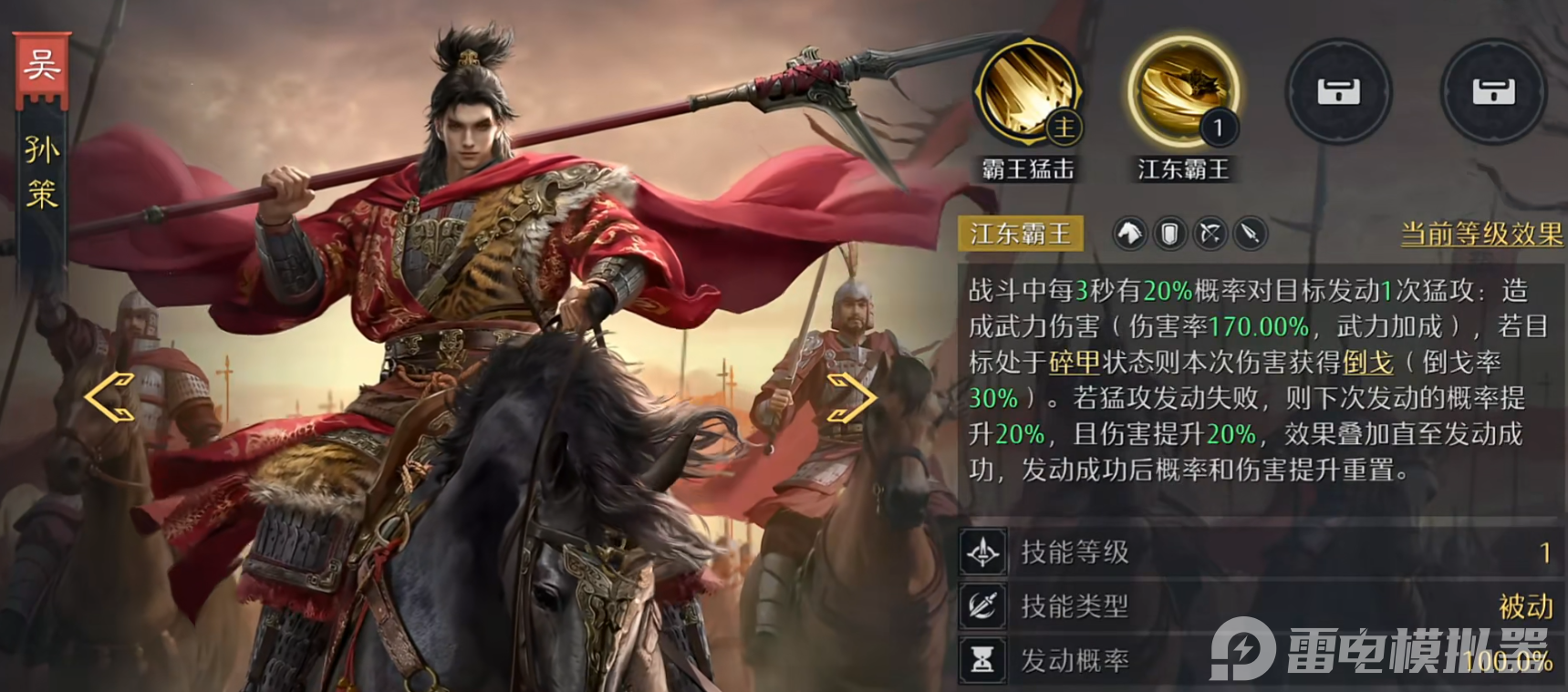 九牧之野孙策凭着易获取、输出稳、续航强的特点,成为手游里的“百搭核心”。如果你也喜欢孙策的强势输出,不妨用雷电模拟器试试,既能发挥武将实力,又能享受更舒适的游戏体验,轻松打造属于自己的强势阵容。