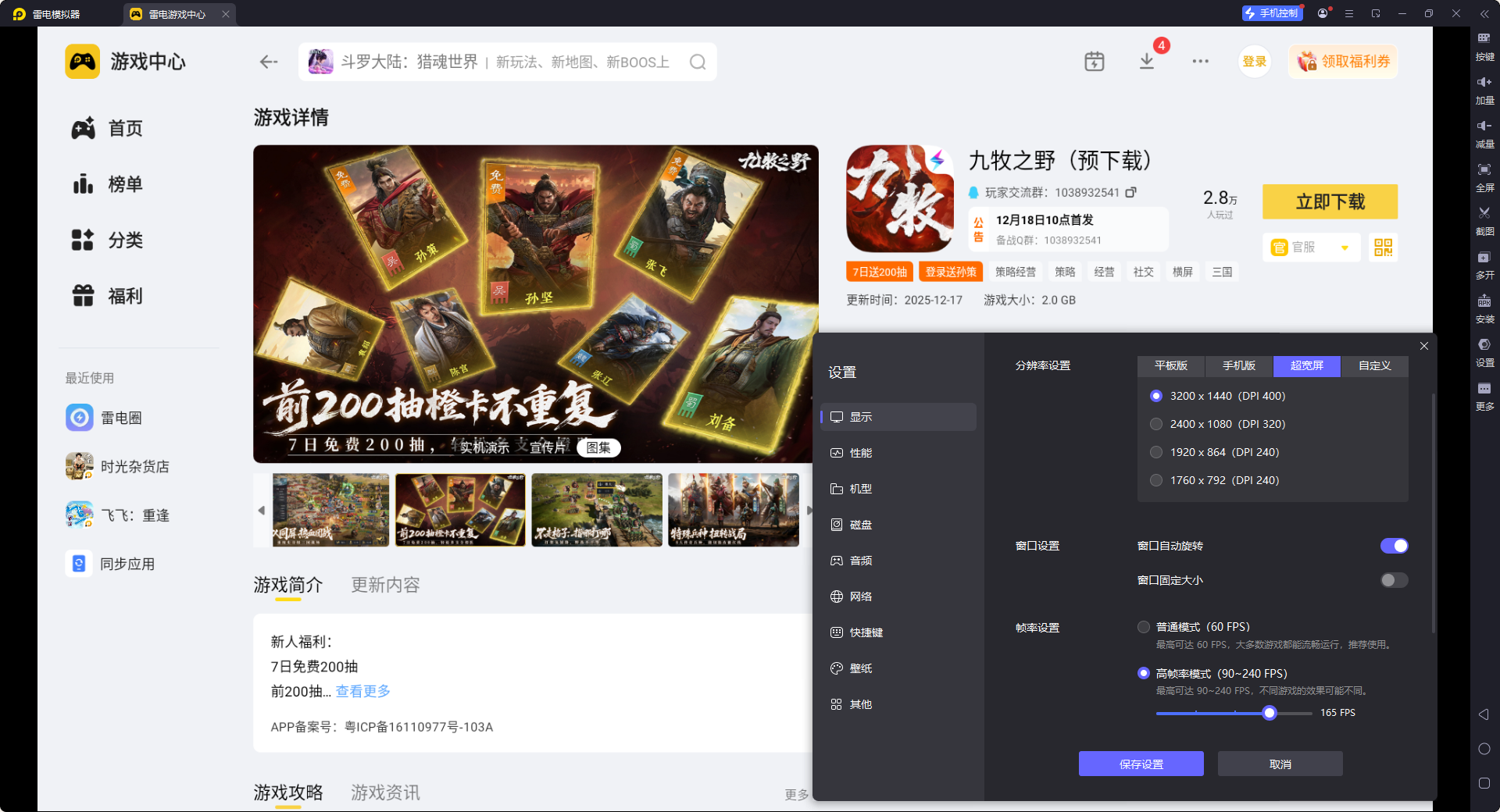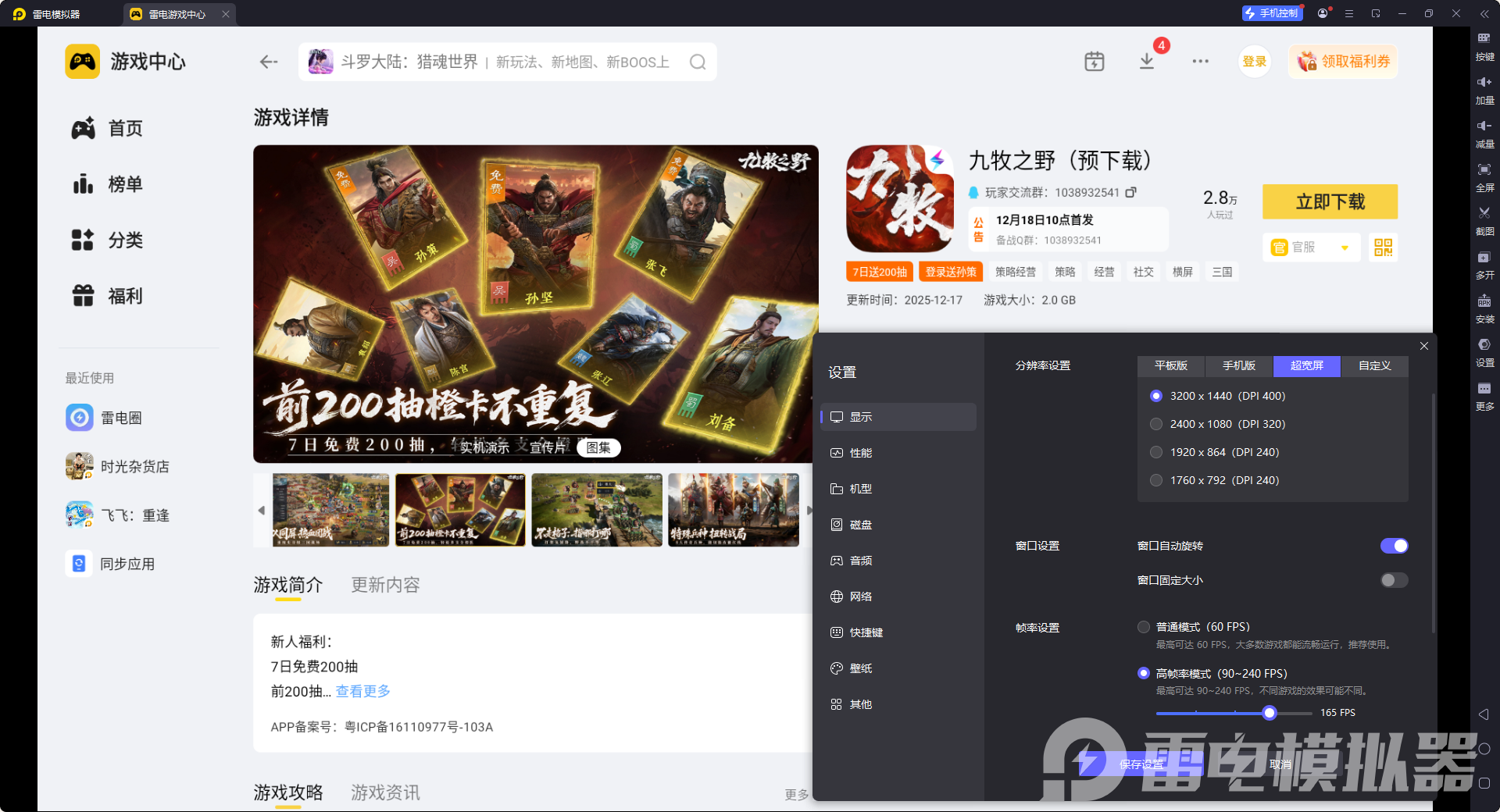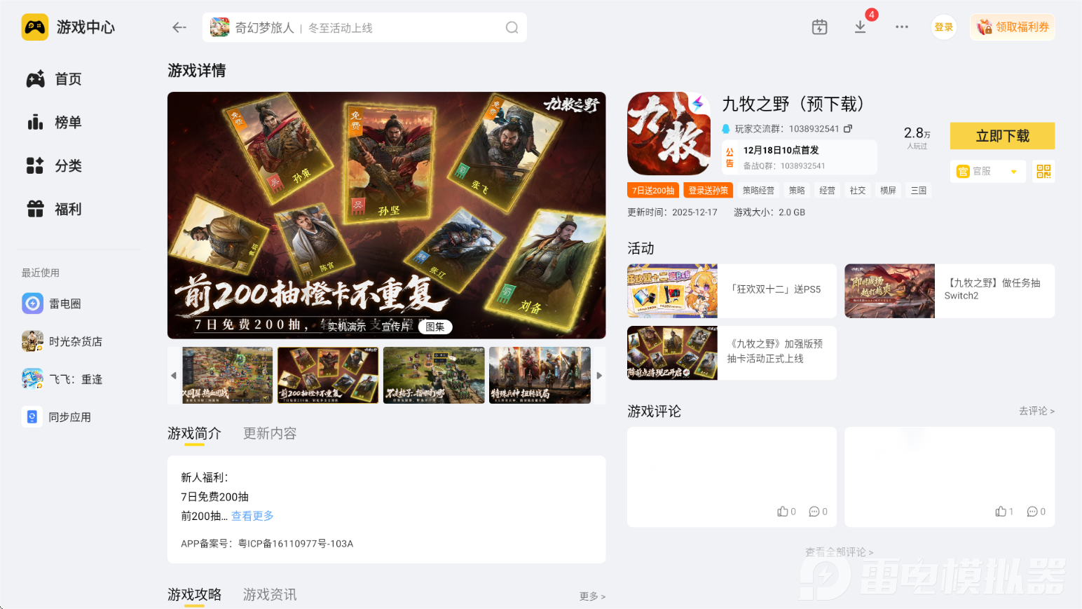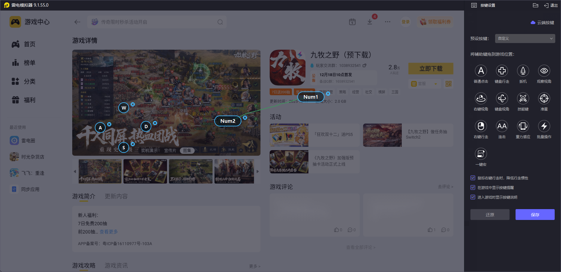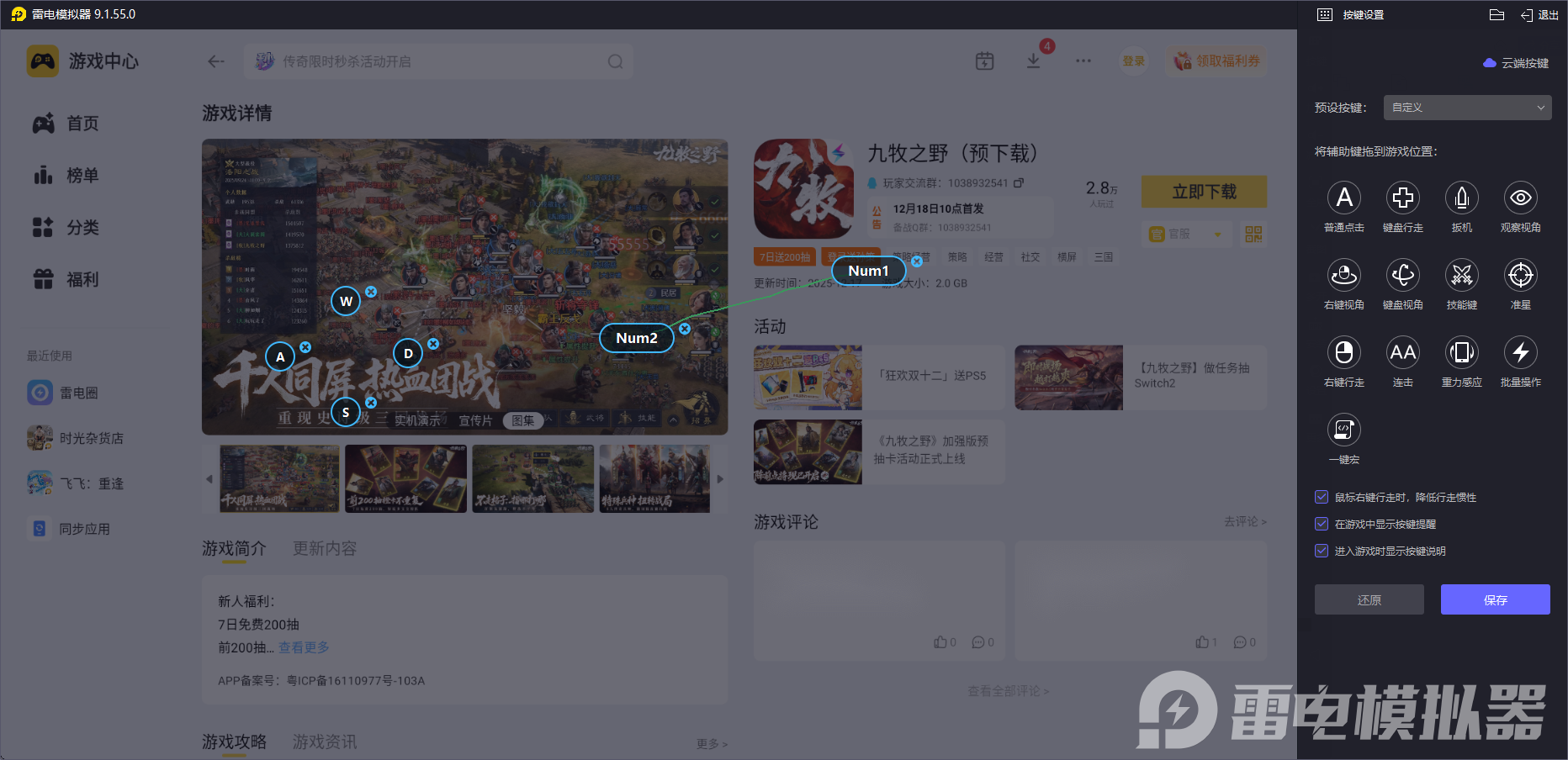大家可以用雷电模拟器玩《九牧之野》,能让孙策的优势发挥得更彻底。孙策需要频繁衔接技能和反击,模拟器的键鼠映射功能特别精准,把技能绑定到键盘后,操作响应比触屏快,不会错过被动触发时机。