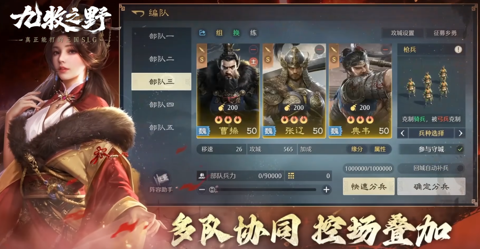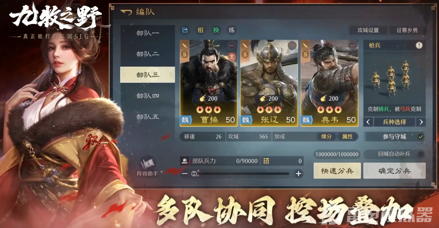主打高速突进和爆发输出,夏侯渊和张辽组成双骑组合,能激活兵种协同加成,移速和冲锋伤害大幅提升。曹操全程提供群体增益,张辽控制敌方关键单位,夏侯渊趁机打出高额伤害,一回合就能实现快速减员,适合喜欢快节奏对战的玩家。