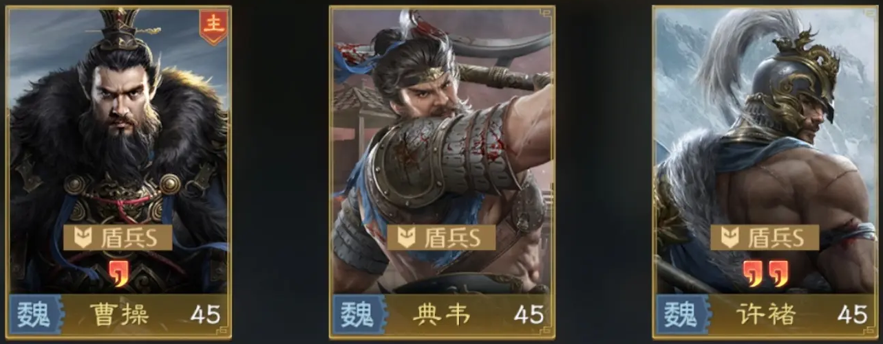 反击盾的核心阵容是曹操+典韦+许褚,三位武将各司其职。曹操当辅助核心,带“仁治武功”“刮骨疗毒”技能,负责治疗和全队减伤增伤;典韦和许褚是反击核心,典韦带“斩将夺锋”叠加重伤效果,许褚选“反击”“虎贲军”提升反伤强度。兵法优先选回复、减伤类,让队伍承伤越久,反击输出越猛,形成生存与输出的循环。