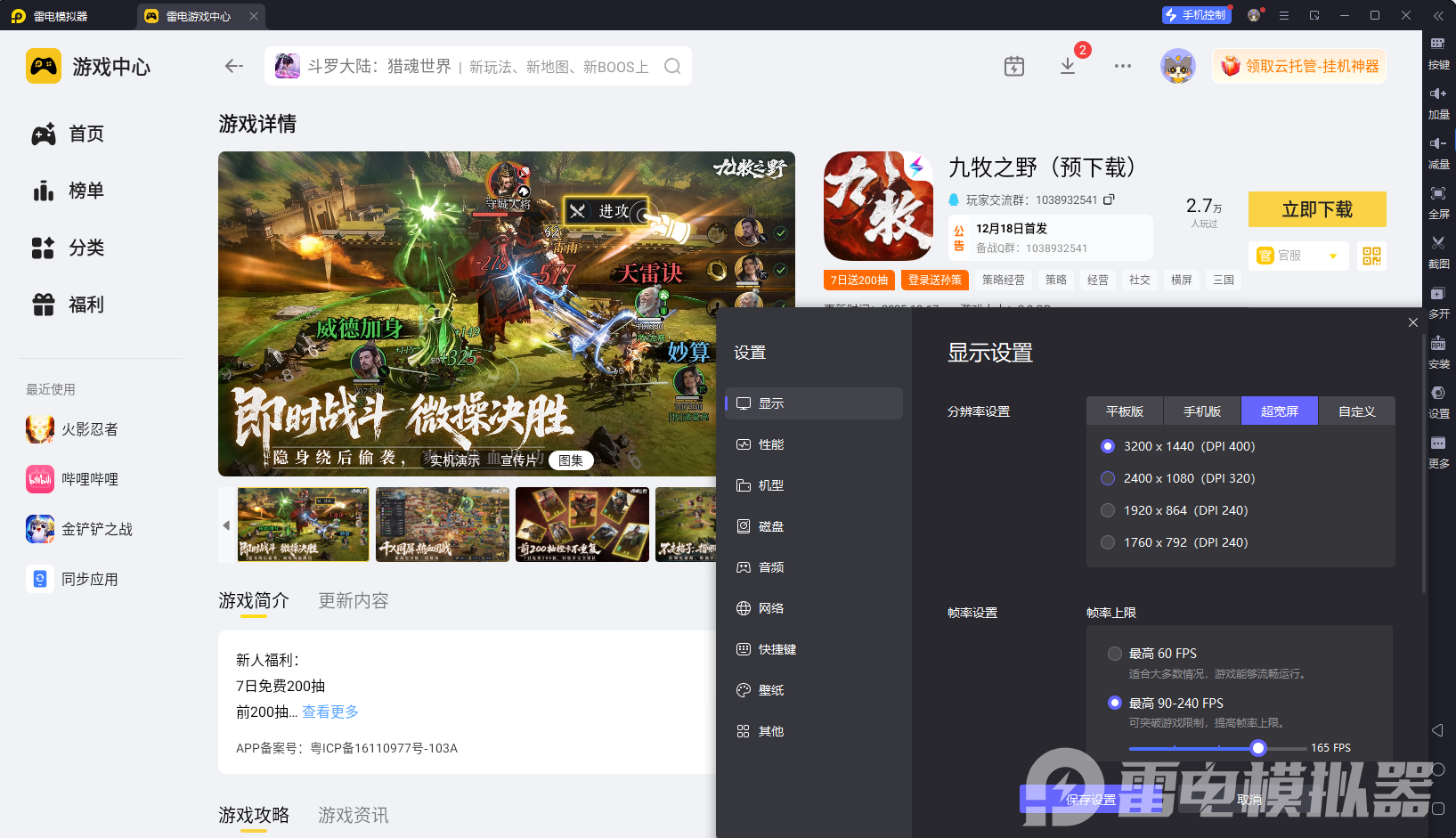 掌握九牧之野开荒教程和S1赛季玩法后,你已具备征战的基础。但想要在这片乱世中脱颖而出,还需借助雷电模拟器的强大功能,让你的游戏体验更上一层楼。