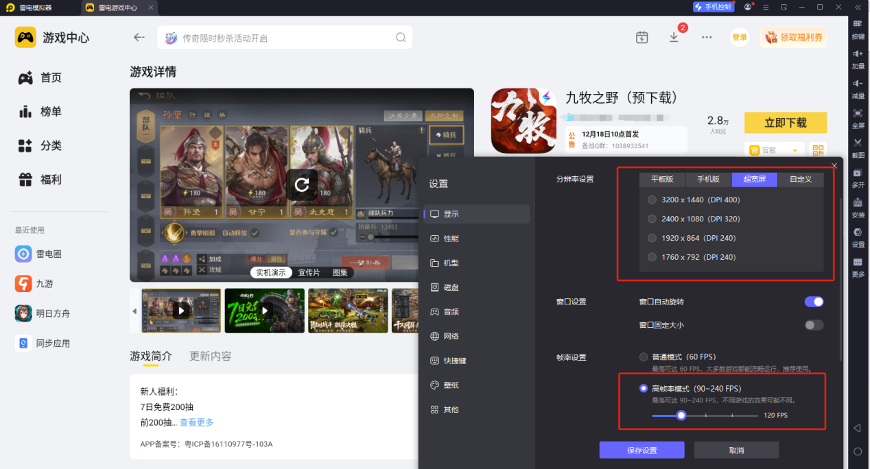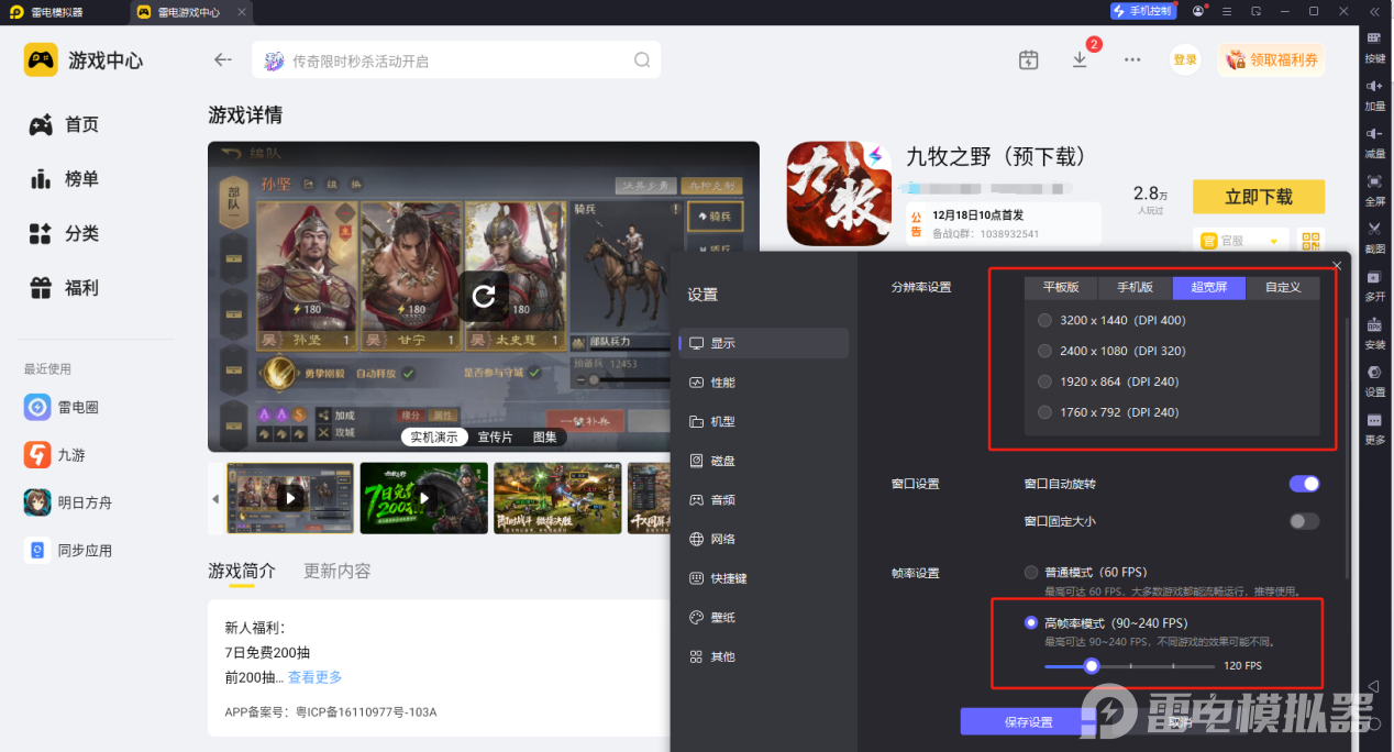告别手机小屏!雷电模拟器充分展现九牧之野战斗的精细画面!电脑大屏视野开阔,120帧高刷带来极致流畅体验!告别卡顿延迟,指挥作战丝滑流畅!