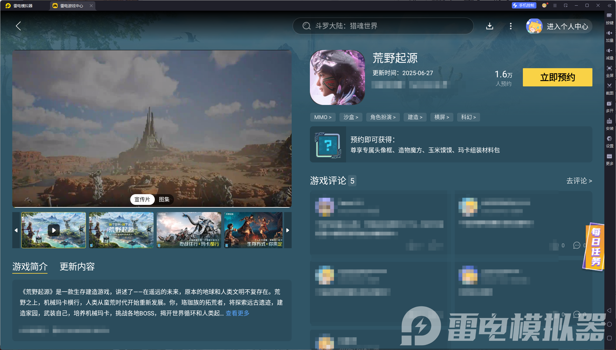 想要下载荒野起源模拟器,那就得使用雷电模拟器,直接预约方便快捷,等到游戏上线即可自动为你进行下载。