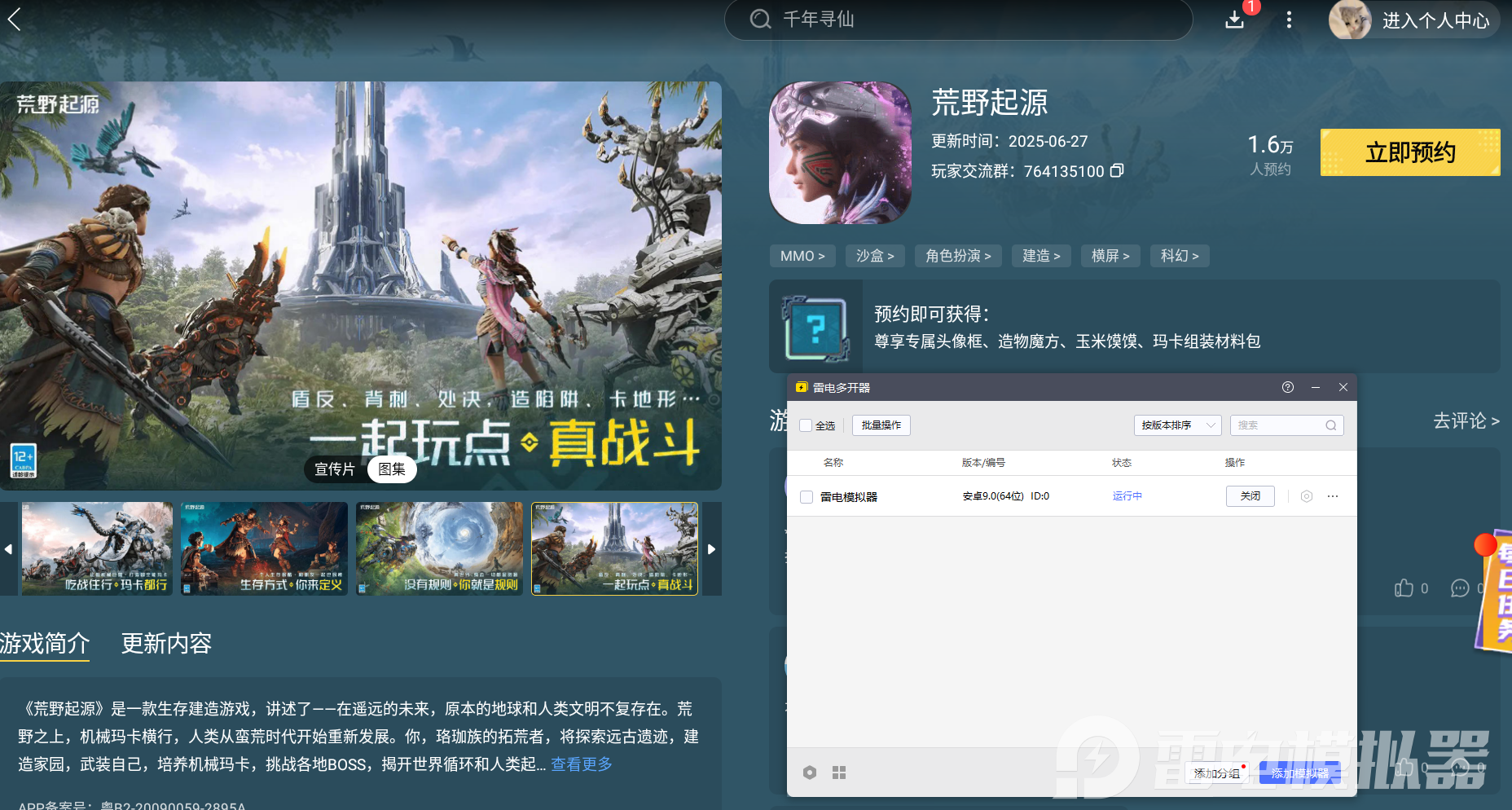 如果还有小伙伴还没体验过《荒野起源》,快来加入吧,搬砖的乐趣等你来感受。想让荒野起源搬砖更顺利,就下载雷电模拟器,它会让你的游戏体验更棒,助你在游戏里收获满满,获得前所未有的游戏体验。