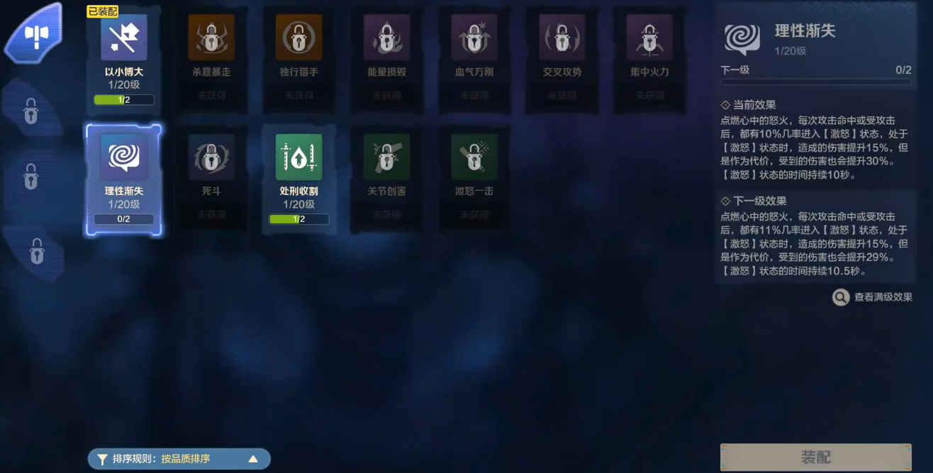 均衡输出流:能量毁损、调停;能量毁损可提升玩家的技能伤害,配合调停的降低受伤风险,不仅兼顾了输出与生存,更是适合大多数战斗场景,角色身上还会显示直观光效,进一步增强玩家的视觉反馈,在副本清怪、中小型boss战等场合都是能适用的。