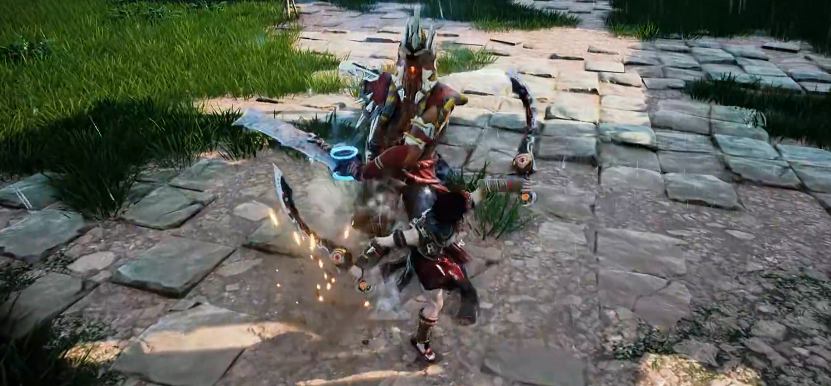 双刀的攻击速度可是非常快的,能让大家在短时间内打出多段的伤害,视觉效果可谓是十分的炫酷,适合喜欢操作的玩家来使用,其中的弹反机制在对抗BOSS时表现出色,武器会发光提示格挡窗口,成功弹反后更是能发动高跳切割敌人首级并猛砸地面的组合技,造成巨额伤害。