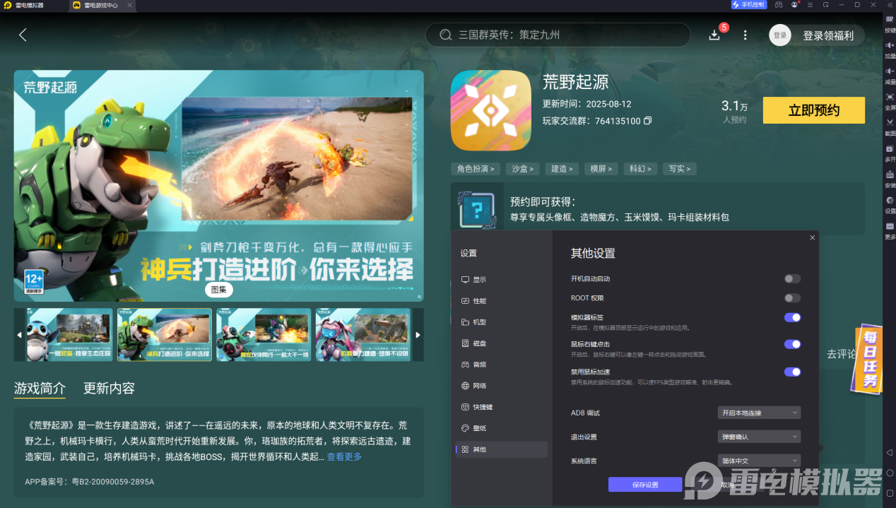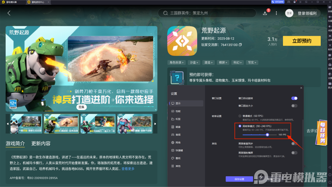雷电模拟器性能优越,稳定165帧数能够流程游玩市面上的所有手游大作,游玩荒野起源的流畅度也是非常的高,及时面对高特效多物体的场合也能维持各位稳定的游戏。