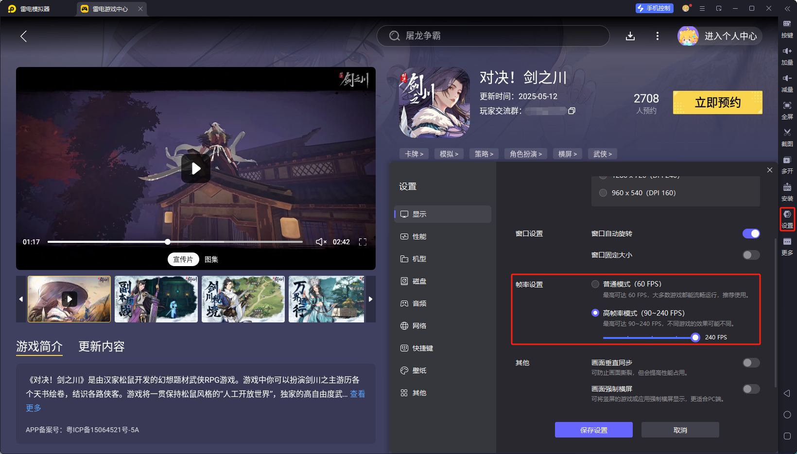 对决剑之川作为高自由度武侠RPG,拥有精美的场景设计和技能特效。雷电模拟器支持最高240帧率运行,并可通过调整分辨率和开启抗锯齿功能,消除手机端的发热降频问题,让技能特效、角色建模细节完整呈现,大幅增强剧情探索和战斗的沉浸感。
