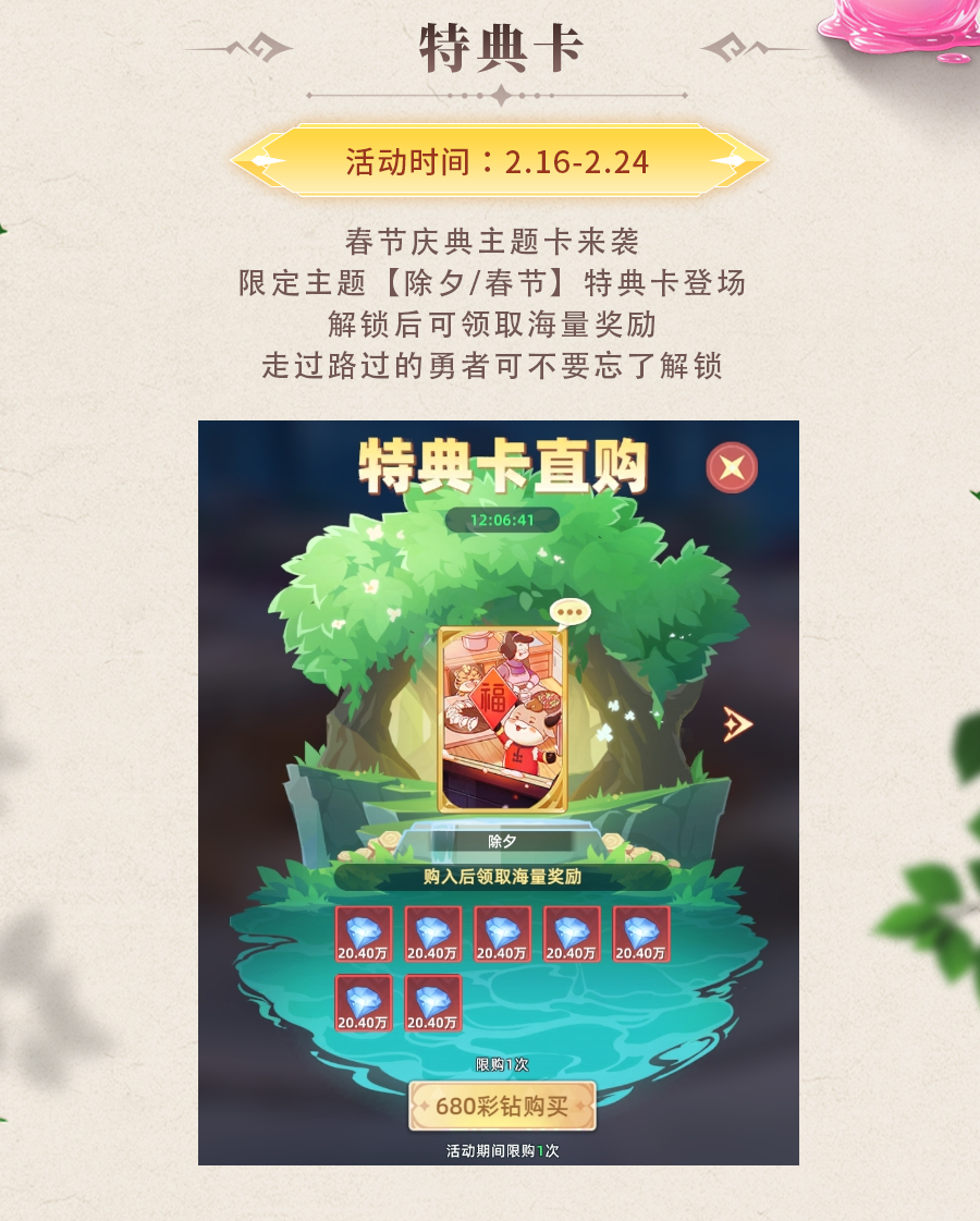 红包雨落福满门,特典卡启好运来!新春限时活动来袭!还有SP神翼火凰凤翼重磅登场本期推文福利上新回馈!!礼包码:RCTBGO(一键复制领取兑换)更多内容请查看下图~
