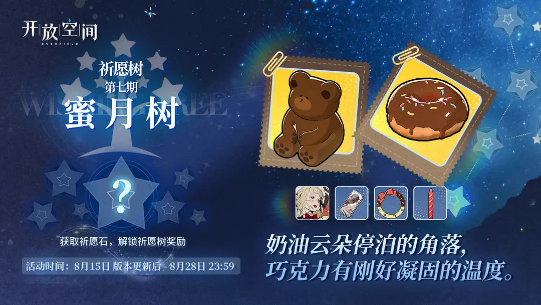 ✦活动时间✦8月15日 版本更新后 - 8月28日 23:59✦活动说明✦第七期兑换树即将开启。奶油云朵停泊的角落,巧克力有刚好凝固的温度。