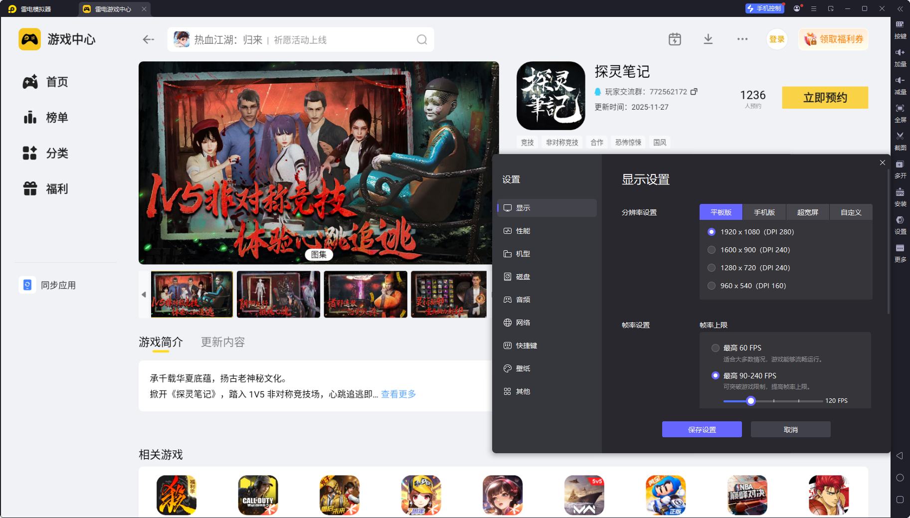 在电脑上通过雷电模拟器畅玩探灵笔记手游,能为玩家带来远超手机端的沉浸式体验和实战优势,完美契合这款中式恐怖竞技游戏的操作需求与视觉表现。