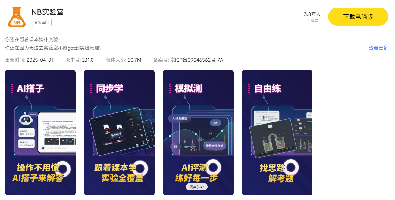 在电脑上体验NB实验室真的好处多多~,不仅能借助大屏清晰观察3D仿真实验的每一个细节,还可以用键鼠精准操控各类实验器材,这样不管是辅助理科学习还是探索趣味实验都更便捷。想要使用NB实验室电脑版,需借助雷电模拟器来实现,下面就为大家详细分享NB实验室电脑版的下载入口以及具体安装步骤,整个流程简单易懂,跟着操作就能快速上手NB实验室电脑版。