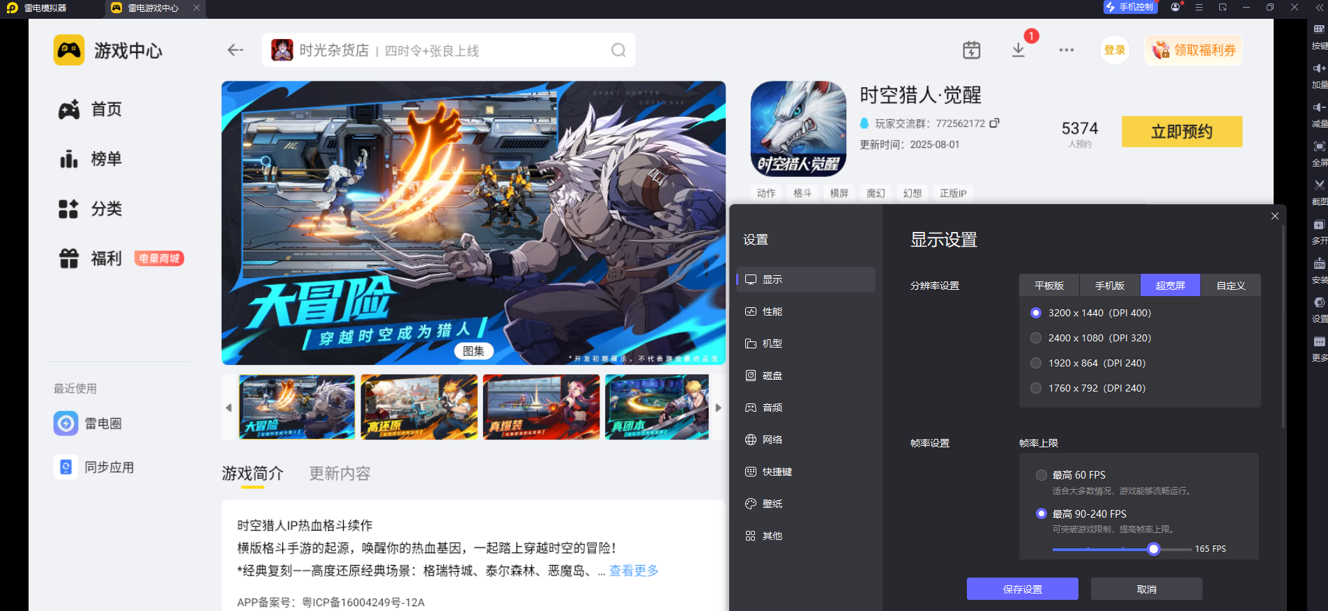用雷电模拟器玩《时空猎人:觉醒》,画面体验会大幅升级。模拟器支持4K分辨率和超宽屏显示,能清晰呈现游戏里的赛博朋克场景、角色细节和技能特效,不会出现手机小屏的视觉局限。同时还能开启165稳定帧率模式,战斗时画面丝滑无拖影,技能释放的光影效果更饱满,让科幻战场的沉浸感直接拉满。