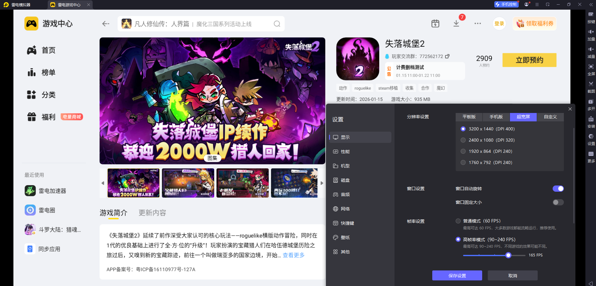 基于这些游戏特点,雷电模拟器是游玩《失落城堡2》的绝佳搭档。它能完美适配游戏的画面和操作需求,现在预约就能第一时间用雷电模拟器开启冒险,避免手机端的操作局限,让每一次探索都更尽兴。