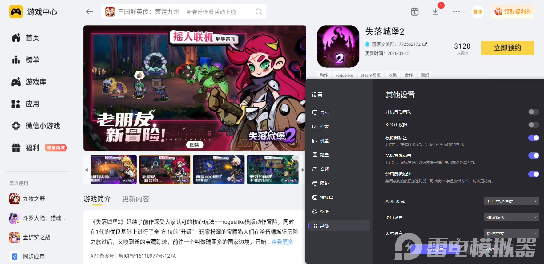 二、雷电模拟器游玩的体验适配