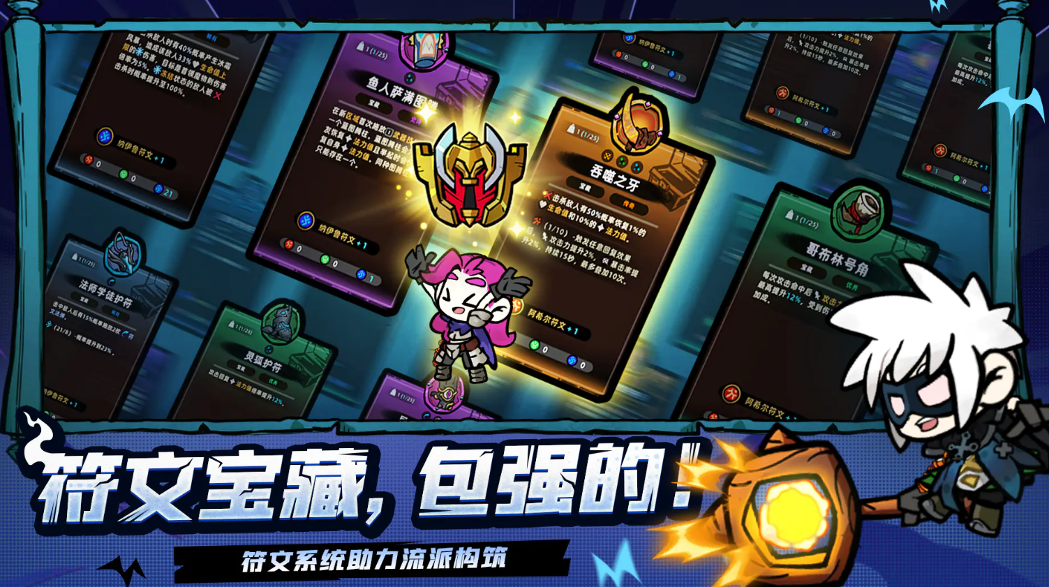 而且带来了数百中不同的武器选择,玩家可自由组合搭配,探索出多样化的战斗流派。同时,超过百种带有随机被动效果,让玩家在收集过程中不断强化自身,整体的战斗策略感十足。