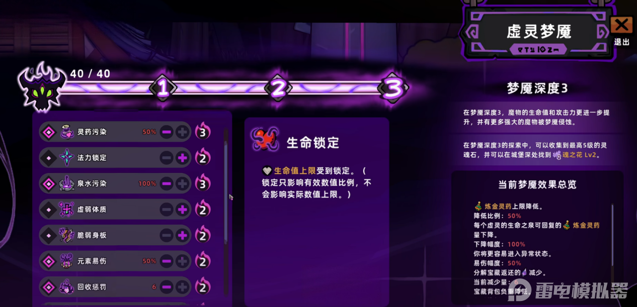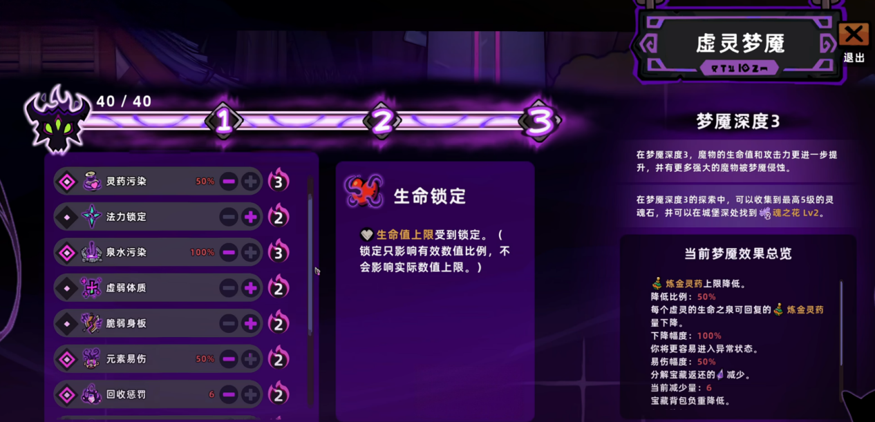 成功解锁后,在游戏主界面进入营地场景,找到NPC秘法师尼娅与其对话,在菜单中即可选择切换至梦魇难度。同时在该界面还能自由调整梦魇深度,梦魇深度等级越高,关卡敌人强度、陷阱密度、BOSS机制难度会进一步提升,大家可以根据自身操作水平,选择合适的深度进行挑战,灵活调整难度梯度。