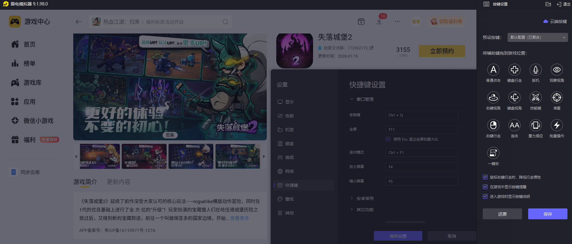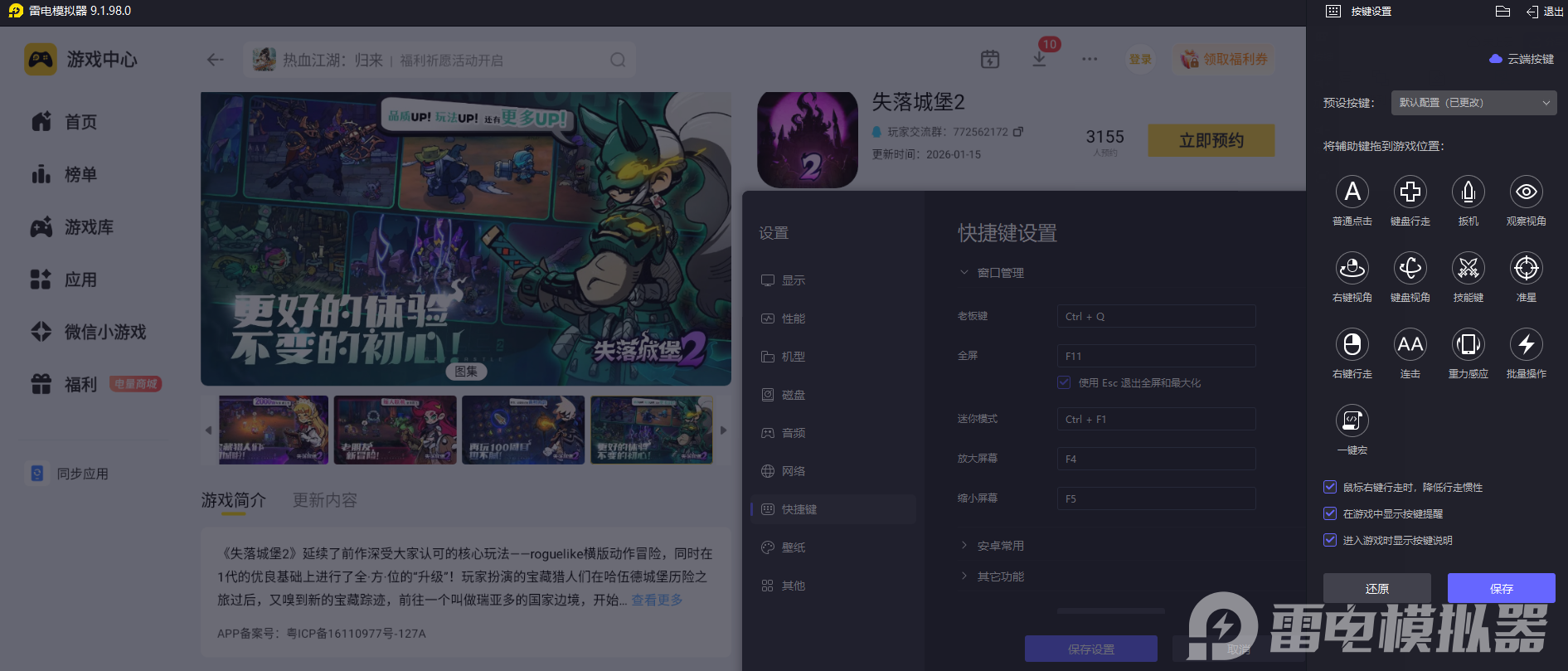 梦魇难度敌人攻击前摇更短、连招更密集,还会频繁出现大范围压制技能,对走位精度、技能释放时机、闪避反应速度要求极高。使用雷电模拟器可实现键盘鼠标自定义操控,方向移动、技能释放、道具使用都能独立绑定按键,操作响应更快更跟手,复杂连招与极限闪避都能稳定打出,大幅降低高难度操作失误率。