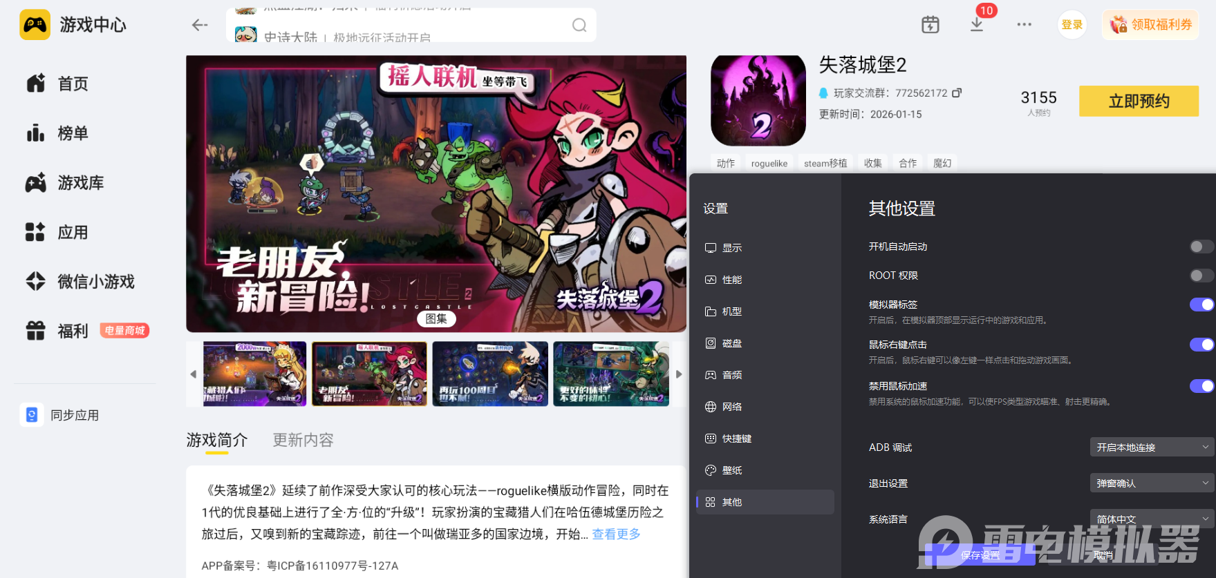 梦魇难度中加入了大量隐蔽陷阱、快速预警特效与暗场机制,手机小屏幕容易忽略关键危险提示,导致意外掉血甚至直接翻车。雷电模拟器支持4K分辨率+电脑大屏高清显示,场景纹理、敌人动作等都能清晰呈现,能够提前预判危险、规划走位路线,面对快速突袭与隐藏机制时反应更及时,闯关容错率与成功率显著提升。