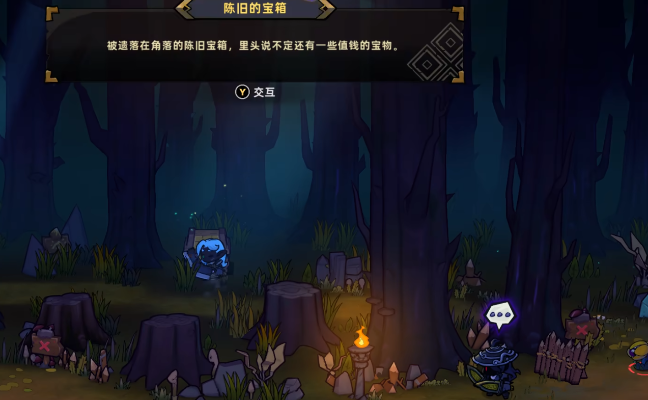 黑森林有两个隐藏宝箱,第一个在首个房间右侧,打碎木箱会出现三角指示牌,跟着走就能在密林角落找到旧宝箱;第二个在第二个房间,先和NPC完整对话,触发叉号指引后打破障碍箱,就能找到宝箱。