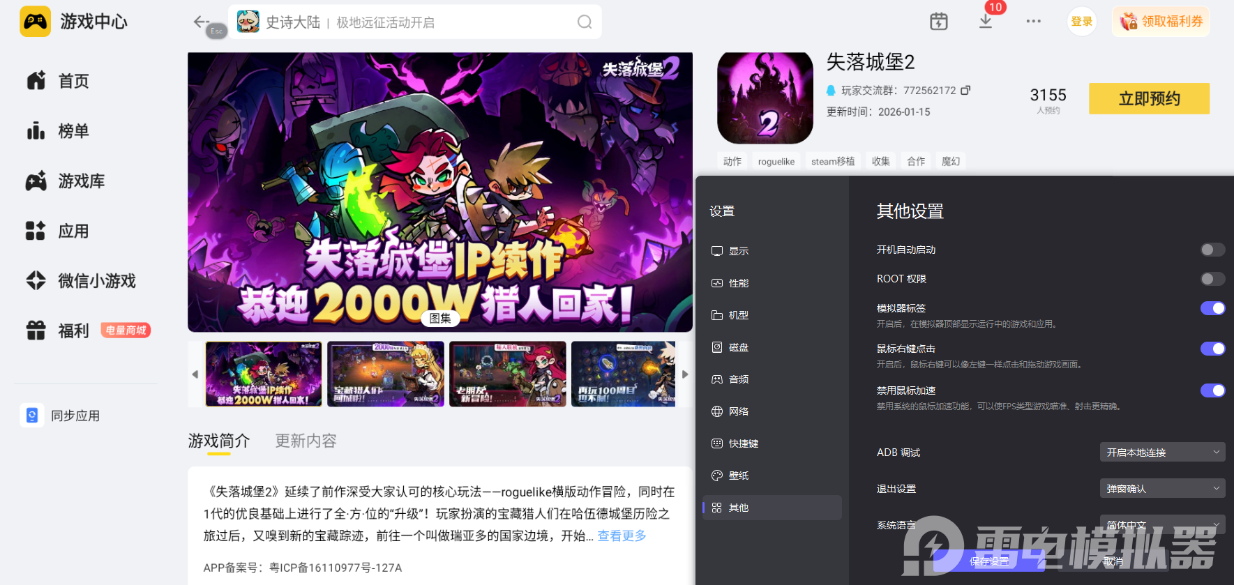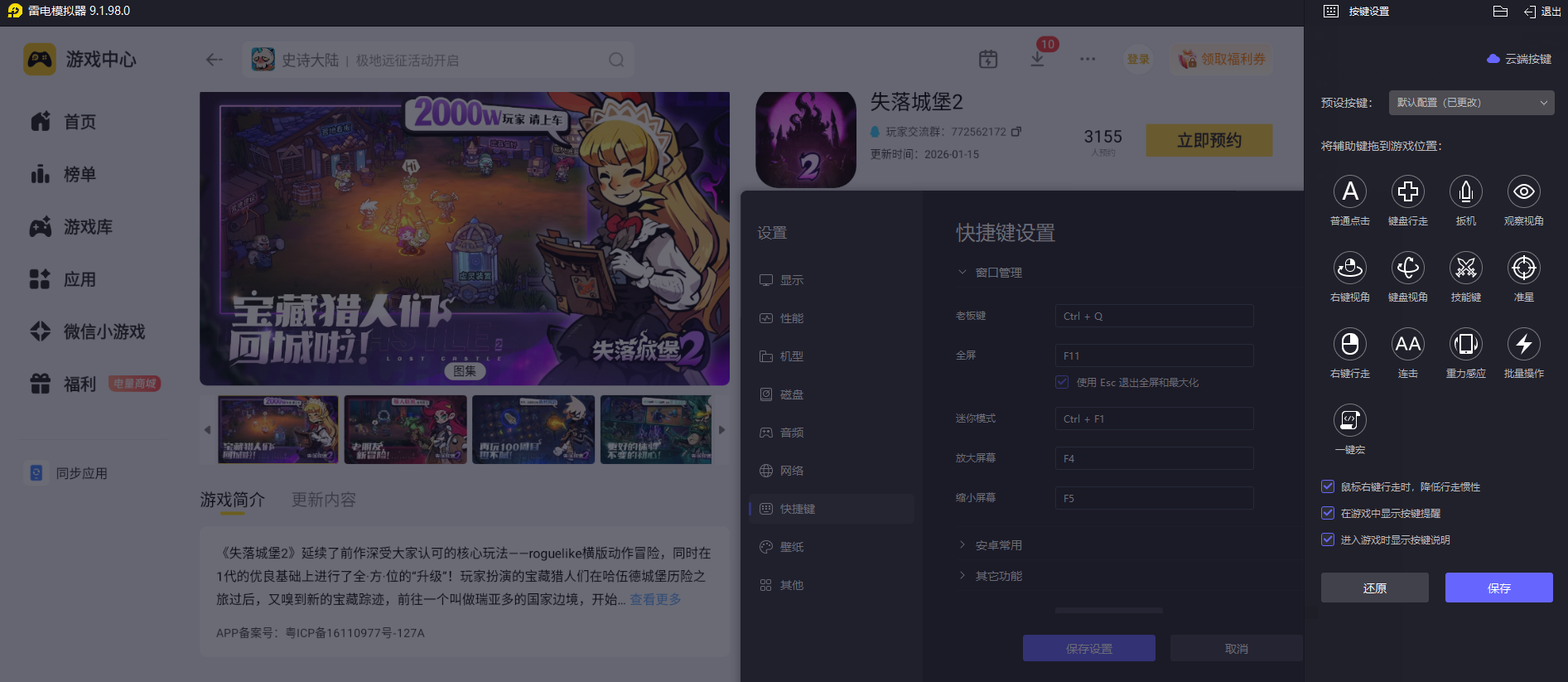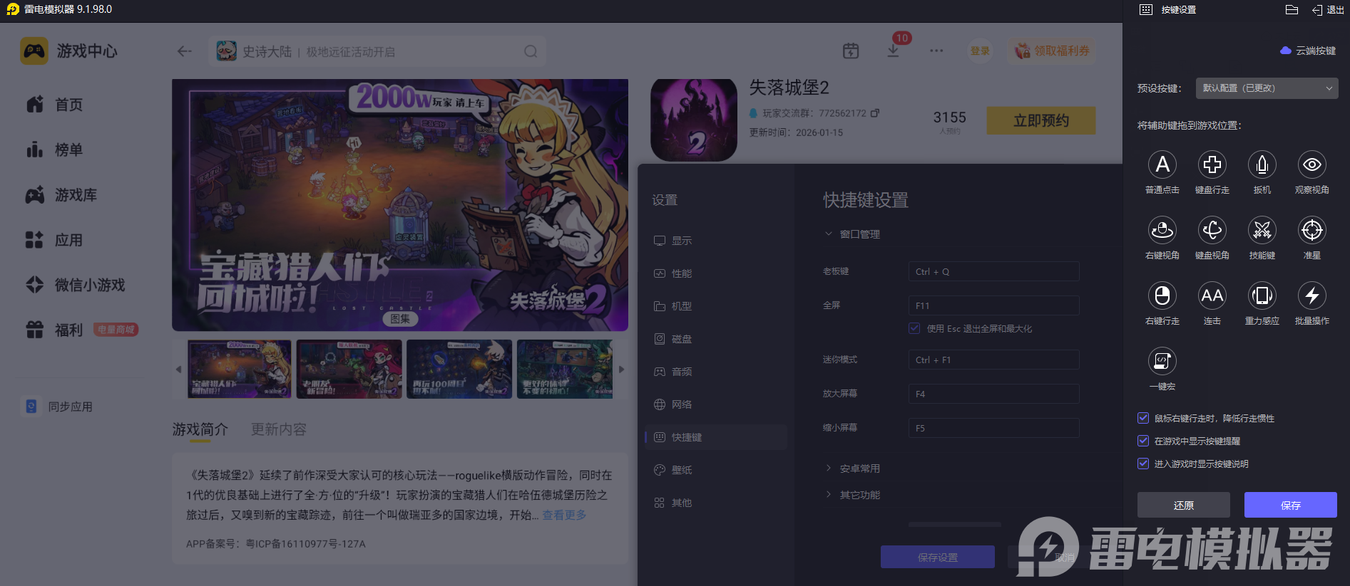 二、雷电模拟器游玩《失落城堡2》的适配体验