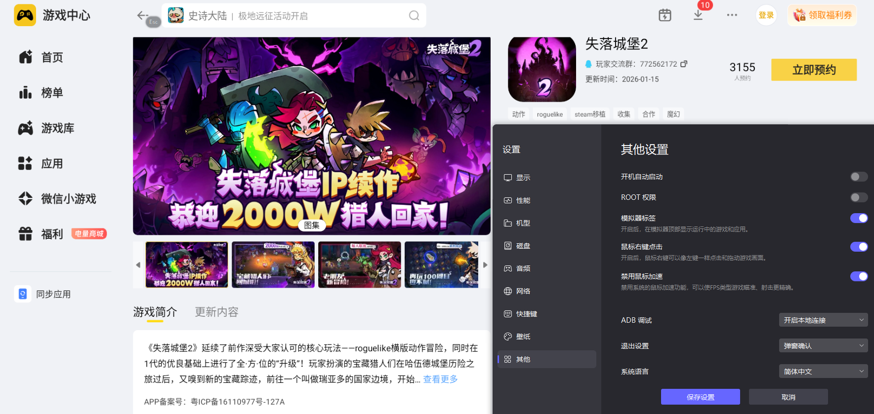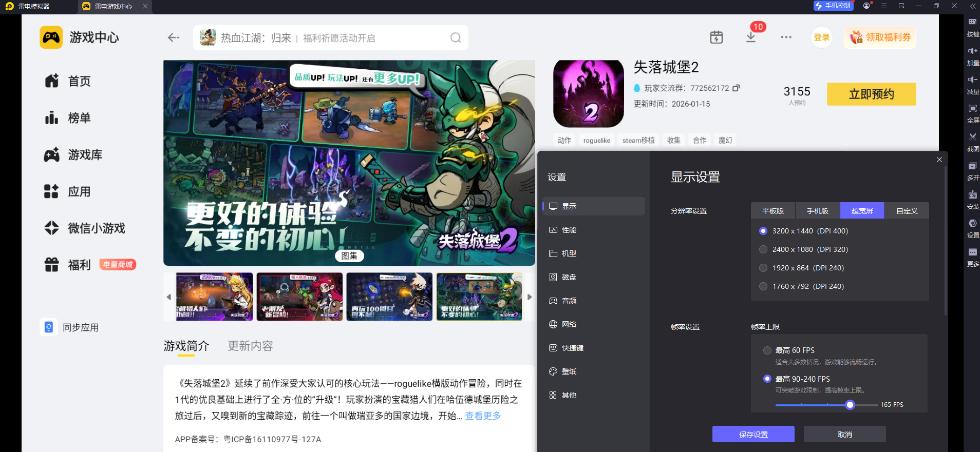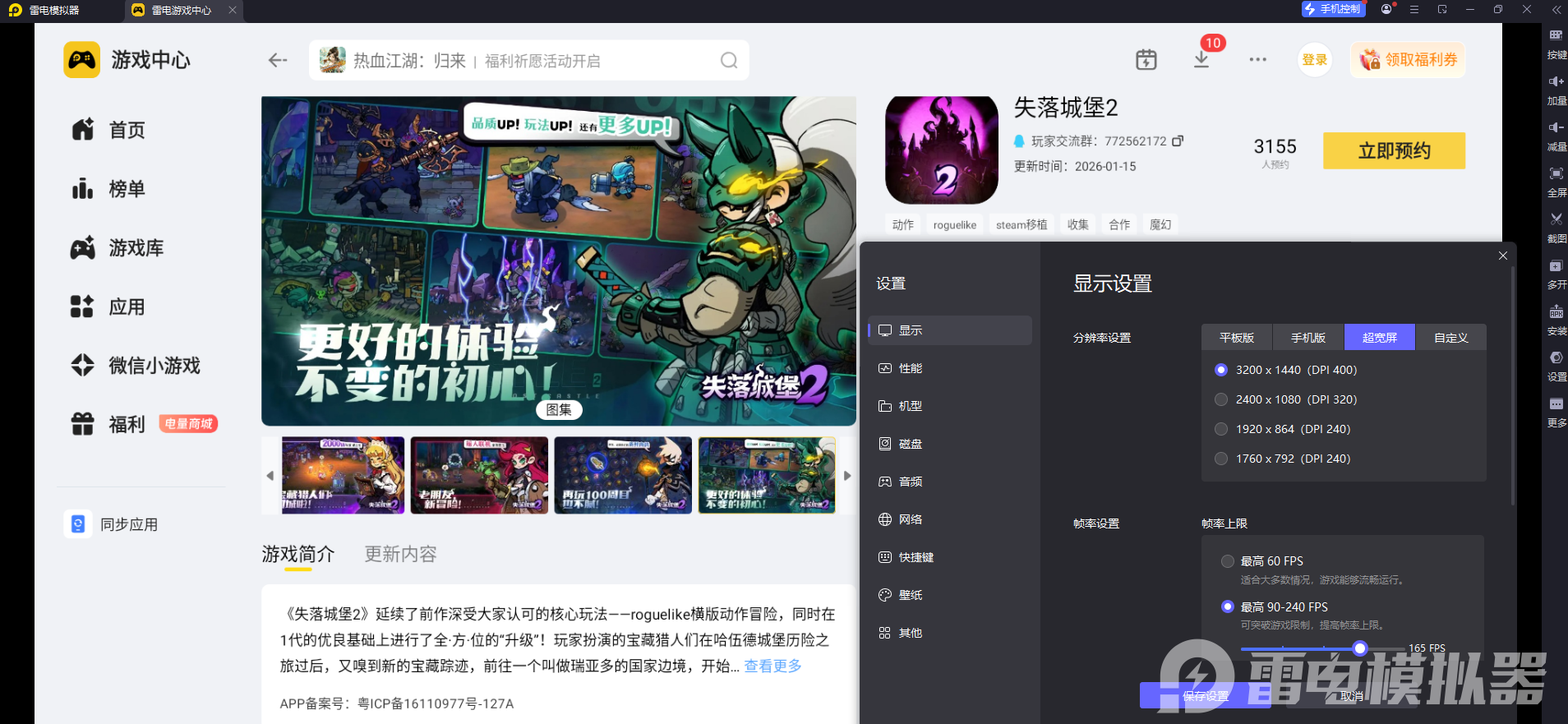 二、雷电模拟器游玩《失落城堡2》的适配体验