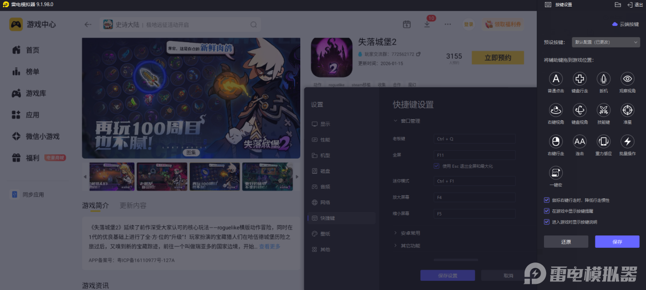 斩击流需要高频点击、精准走位和快速技能衔接,手机触屏操作容易误触、连招断档,雷电模拟器用键盘鼠标操控,按键可以自定义,完全贴合斩击流的连续操作需求,挥砍、突进、走位都能精准触发,连招丝滑不脱节,刚好跟上流派的快节奏操作。