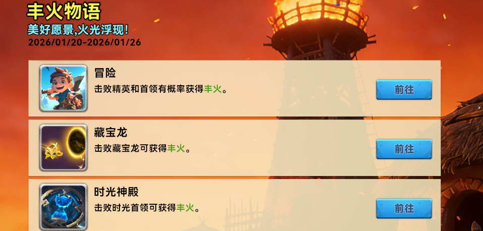 1、通过冒险获取丰火