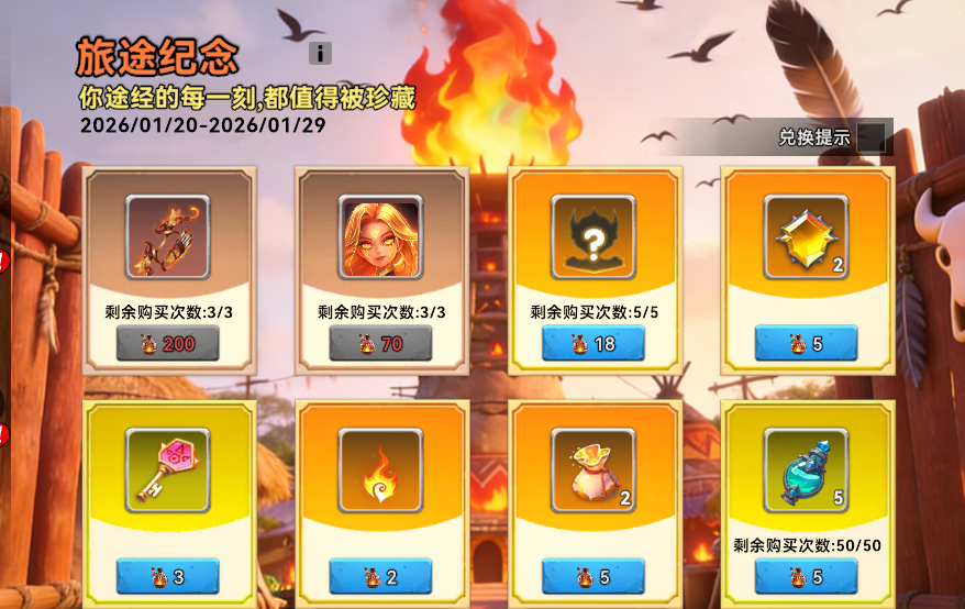 旅途纪念:可以使用火星兑换各种珍贵道具