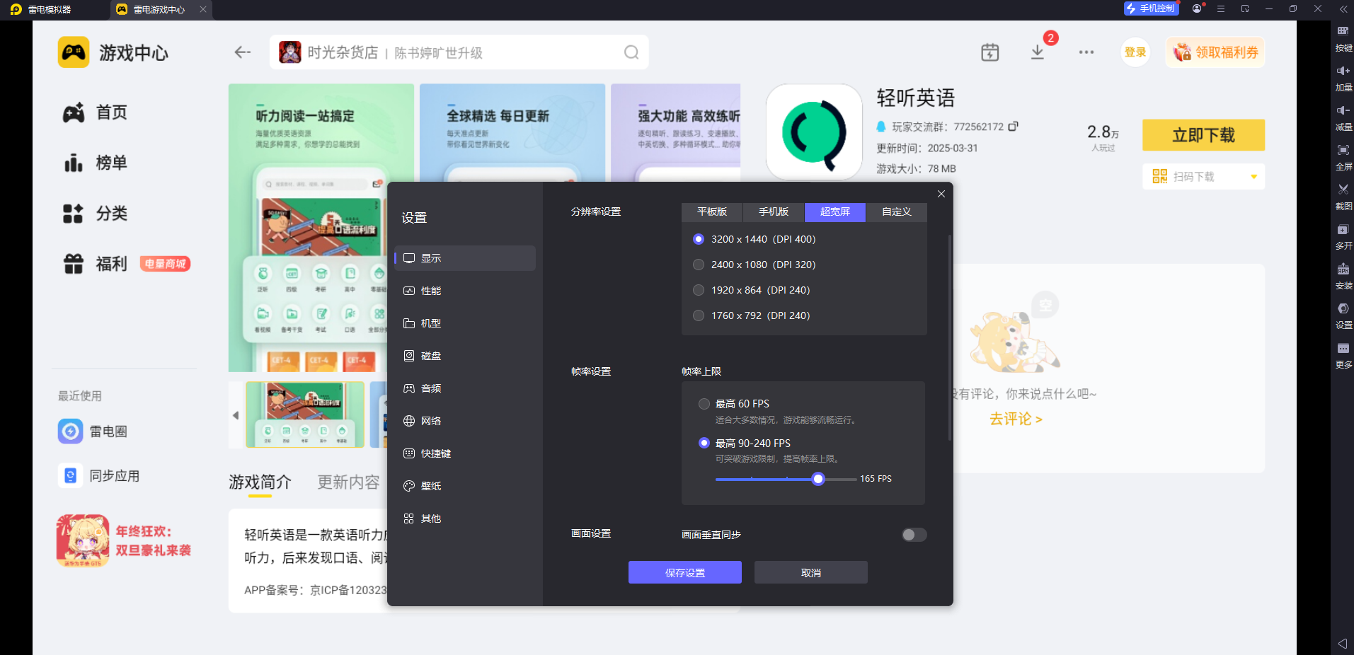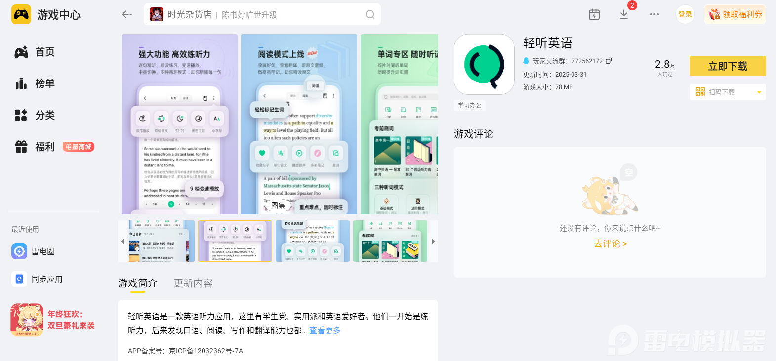 想要顺畅使用轻听英语电脑版,雷电模拟器是性价比很高的选择,它不仅解决了电脑端的适配问题,还通过清晰画面和便捷操作,让学习效率大幅提升。不管是学生党备考四六级,还是职场人提升英语能力,这样的搭配都能让听力学习更轻松,赶紧试试吧!