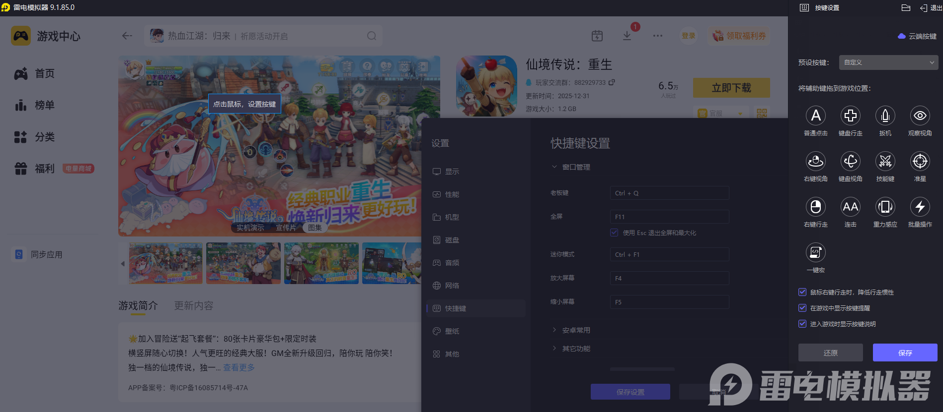 用雷电模拟器玩《仙境传说重生》,支持键盘鼠标自由操作,还能自定义按键布局。不管是职业加点后的技能连招释放,还是副本中精准躲避攻击,键鼠控制都比触屏更灵活,响应延迟低,杜绝误触烦恼。就算是需要频繁操作的自动探索或副本刷怪,也能轻松应对,上手毫无压力。
