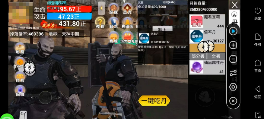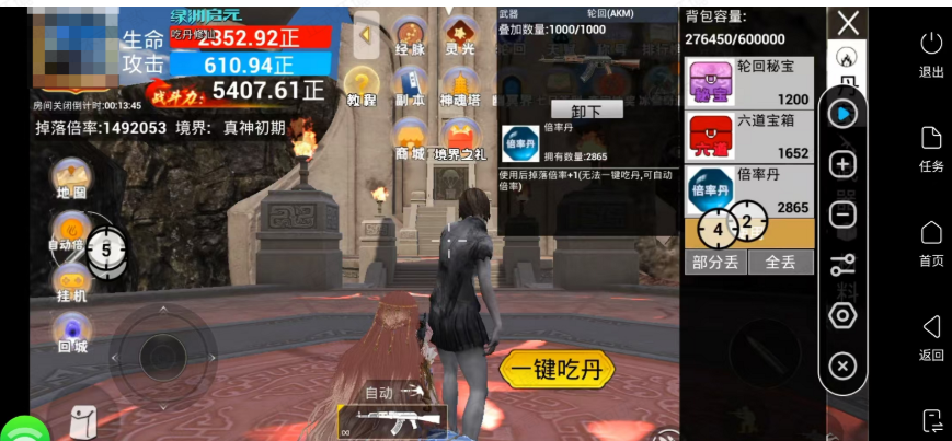 这篇攻略所有方案都是用雷电圈连点器的使用方法:雷电圈app-连点器功能-热门方案-搜吃丹-打开方案-打开游戏-进入出兵页面-运行方案即可。目前已有方案多达20种以上,下面是最多人用的方案自动吃丹自动刷鬼王鬼帝自动刷神魔自动刷魔君宝箱自动刷灵光自动刷倍率丹(无轮回AK)自动刷击杀积分通用挂机刷怪幽冥界拳击手自动刷六道轮回挂池子刷倍率丹和平精英吃丹自动刷魔君跳广告和平精英吃丹修仙压抢开箱和平精英吃丹刷神魔自动转向开箱