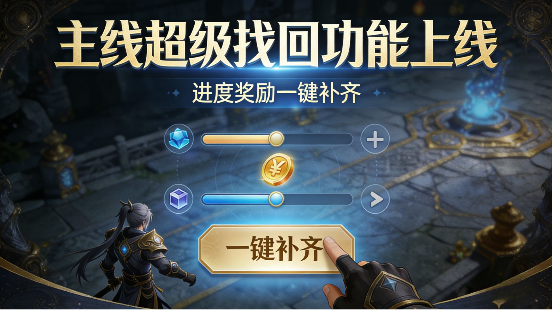 还在因为工作忙碌、学业繁重,错过主线进度和丰厚奖励而遗憾吗?本次版本全新上线「主线超级找回」功能,一键解决你的烦恼!无论是错过的主线关卡进度,还是对应的关卡奖励,都能通过超级找回功能一键补齐。不用再熬夜爆肝补进度,轻轻松松跟上大部队的脚步,版本福利、养成进度全不落,回归也能快速上手,畅玩全新版本!