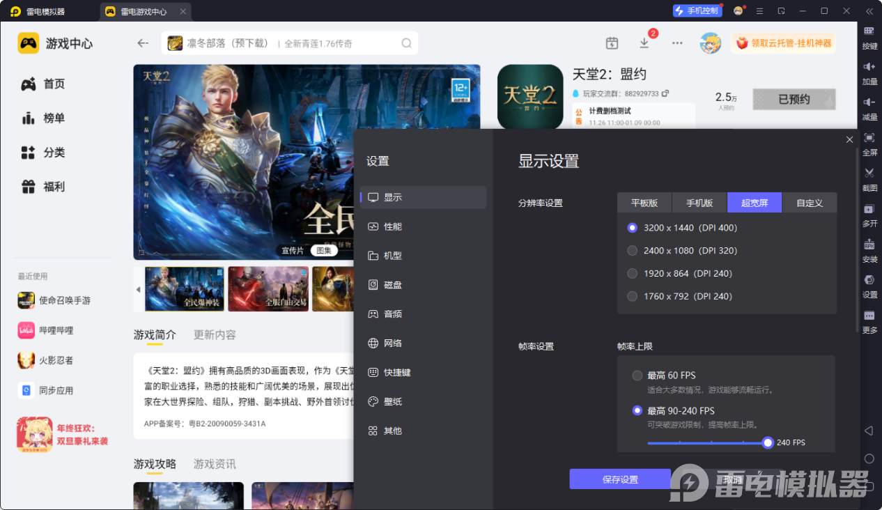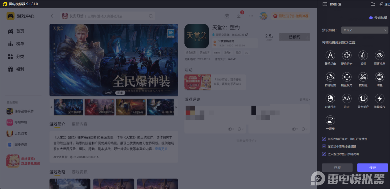 雷电模拟器——天堂2盟约电脑版的好帮手