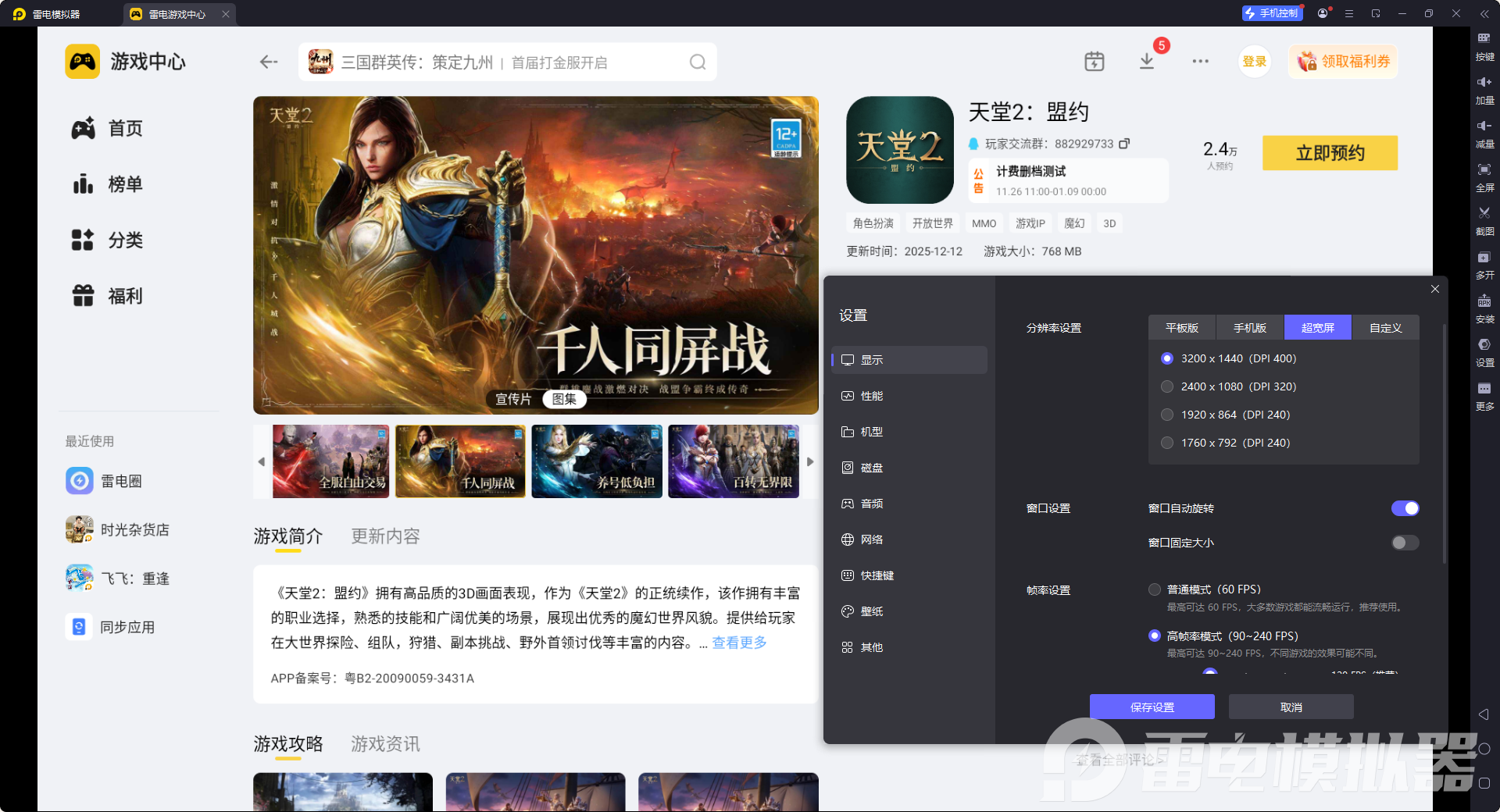 雷电模拟器玩《天堂2盟约》:画面更清晰流畅