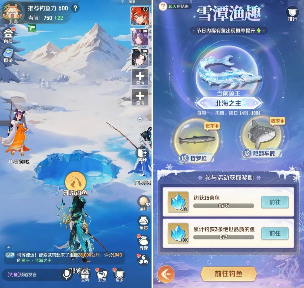 这里不仅有全新的珍稀冰钓鱼种等你收集,更有传说中的北海鱼王限时出没!北海鱼王将在特定时段巡游渔场,并带来大量稀有鱼群!
