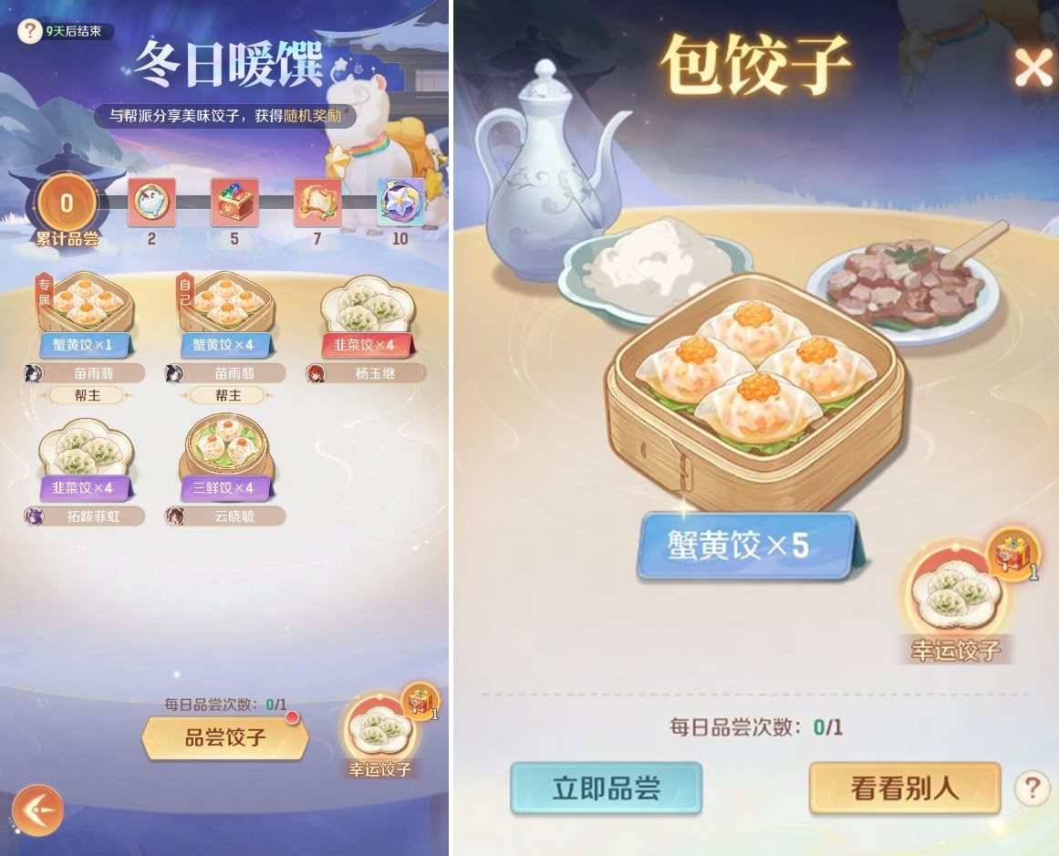 包出高品质饺子,别忘了分享给帮派好友共尝鲜!