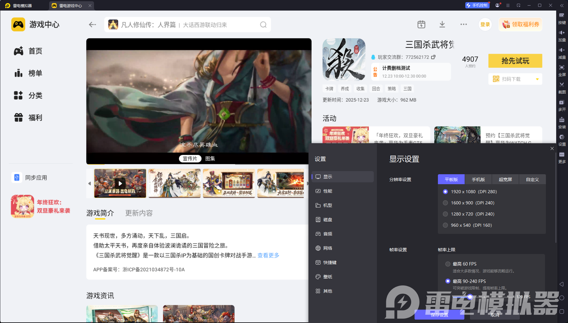 雷电模拟器——三国杀武将觉醒电脑版的好帮手