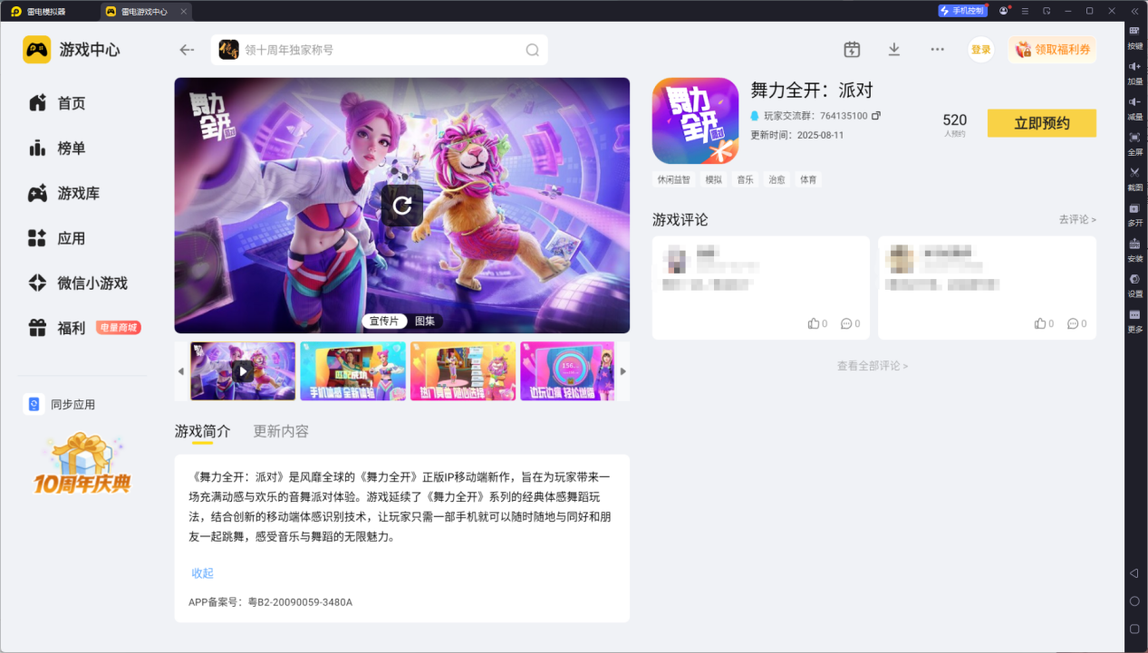 以上就是舞力全开派对什么时候上线的内容介绍,想知道游戏正式上线时间,推荐到雷电模拟器预约,游戏上线会有提醒。