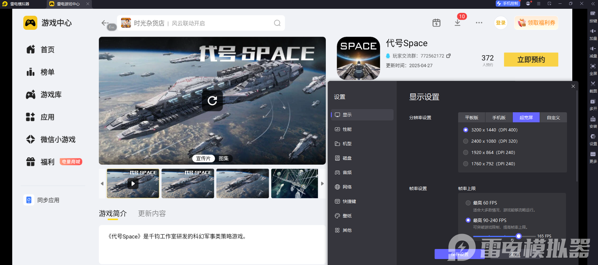 想在电脑上稳定玩《代号Space》,可以选择雷电模拟器,大家直接打开雷电模拟器官网下载安装包,安装完成后就能在模拟器内的雷电游戏中心预约《代号Space》。这款游戏以星际探索、舰队作战为核心,提前预约能第一时间体验测试内容,用电脑游玩也能更充分地感受这款太空策略游戏的独特魅力。