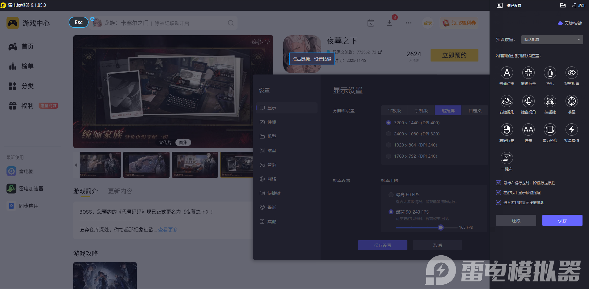 雷电模拟器支持鼠标、键盘自定义按键映射,还提供预设键位方案,无需手动设置就能快速上手。面对游戏中限时选择的分支节点,键盘快捷键能让你快速响应,避免手机触屏误触导致选错;遇到需要反复回溯存档的场景,鼠标操作能精准点击存档、读档按钮,轻松切换不同分支路线,不用再担心手机操作延迟影响选择。