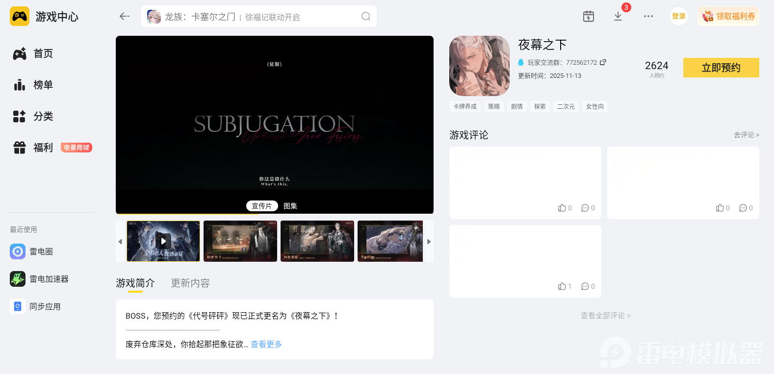 夜幕之下支线任务为游戏增添了更多乐趣与深度,用雷电模拟器玩《夜幕之下》,既能深入解锁支线的精彩内容,又能享受更舒适的游戏体验,让每一次夜间冒险都更尽兴,不妨亲自试试这份独特的游戏乐趣。