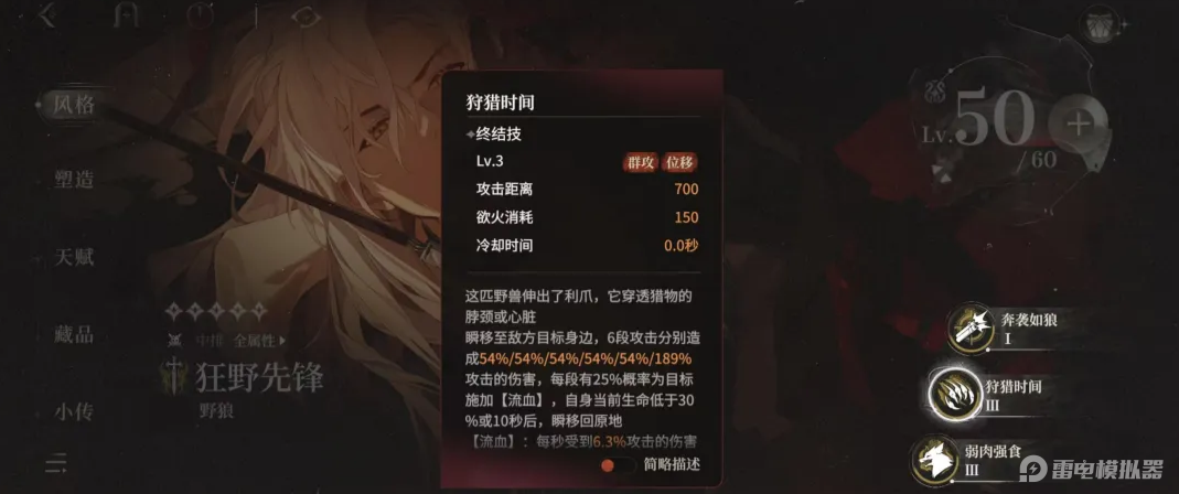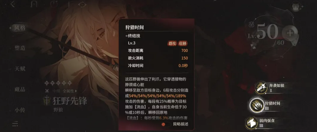 野狼:持续输出型刺客,拥有自回血能力与位移技能,可辅助缓解前排压力。大招机制在流血体系中表现突出,是持续输出的重要选择。