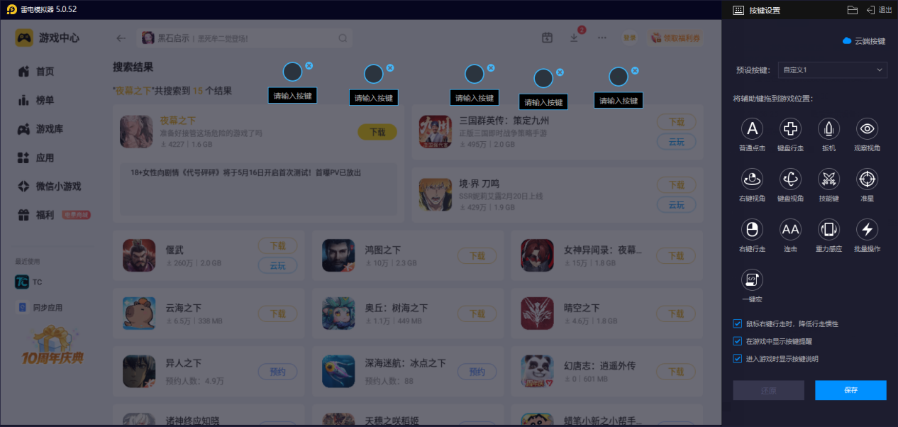 为了能让玩家得到一个更好的游戏体验效果,小编的建议是去选择雷电模拟器,该软件整体性能强大,而且精美的画面表现以及自定义按键设定,可让玩家到时的游戏表现更加出色哦。