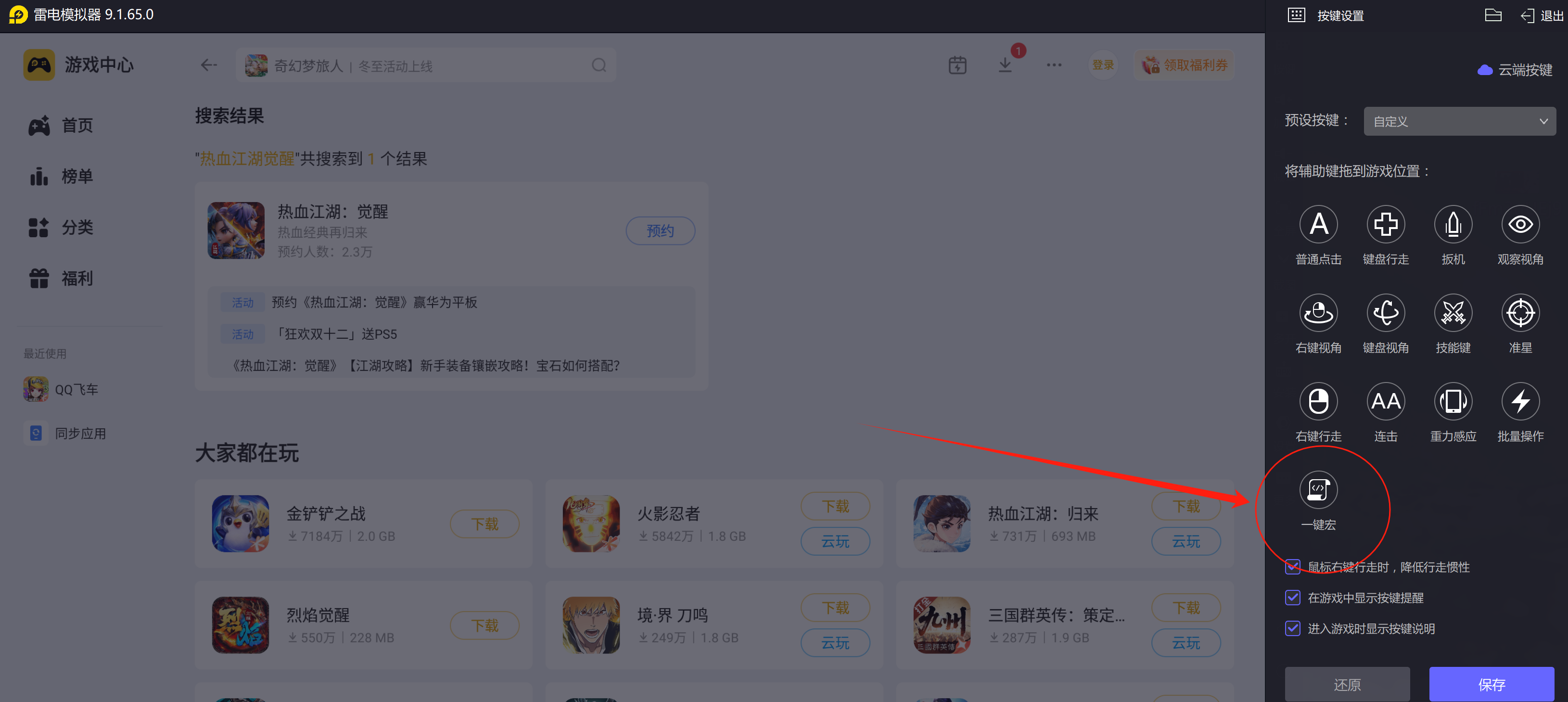 2、简单操作体验:为了简化游戏操作步骤,雷电模拟器还特意为用户,提供先进的默认一键宏功能,让用户轻松完成一键布置、一件撤退等操作,让我们在进行摆摊交易,或拍卖行交易的时候,能无形之中提高任务完成效率。